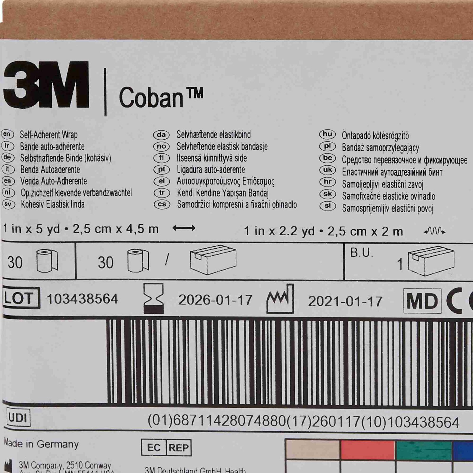 3M™ Coban™ Self-adherent Closure Cohesive Bandage, 1 Inch x 5 Yard