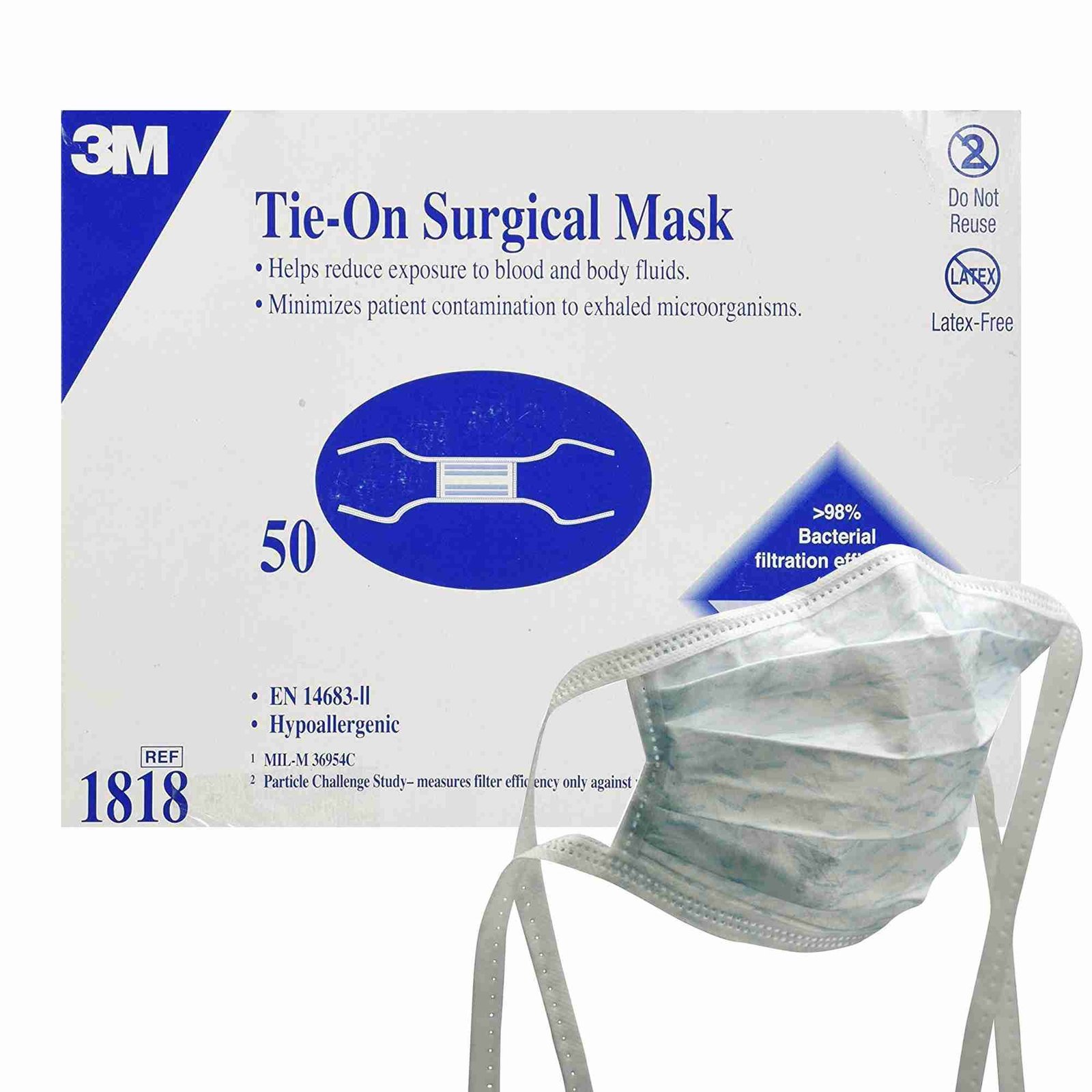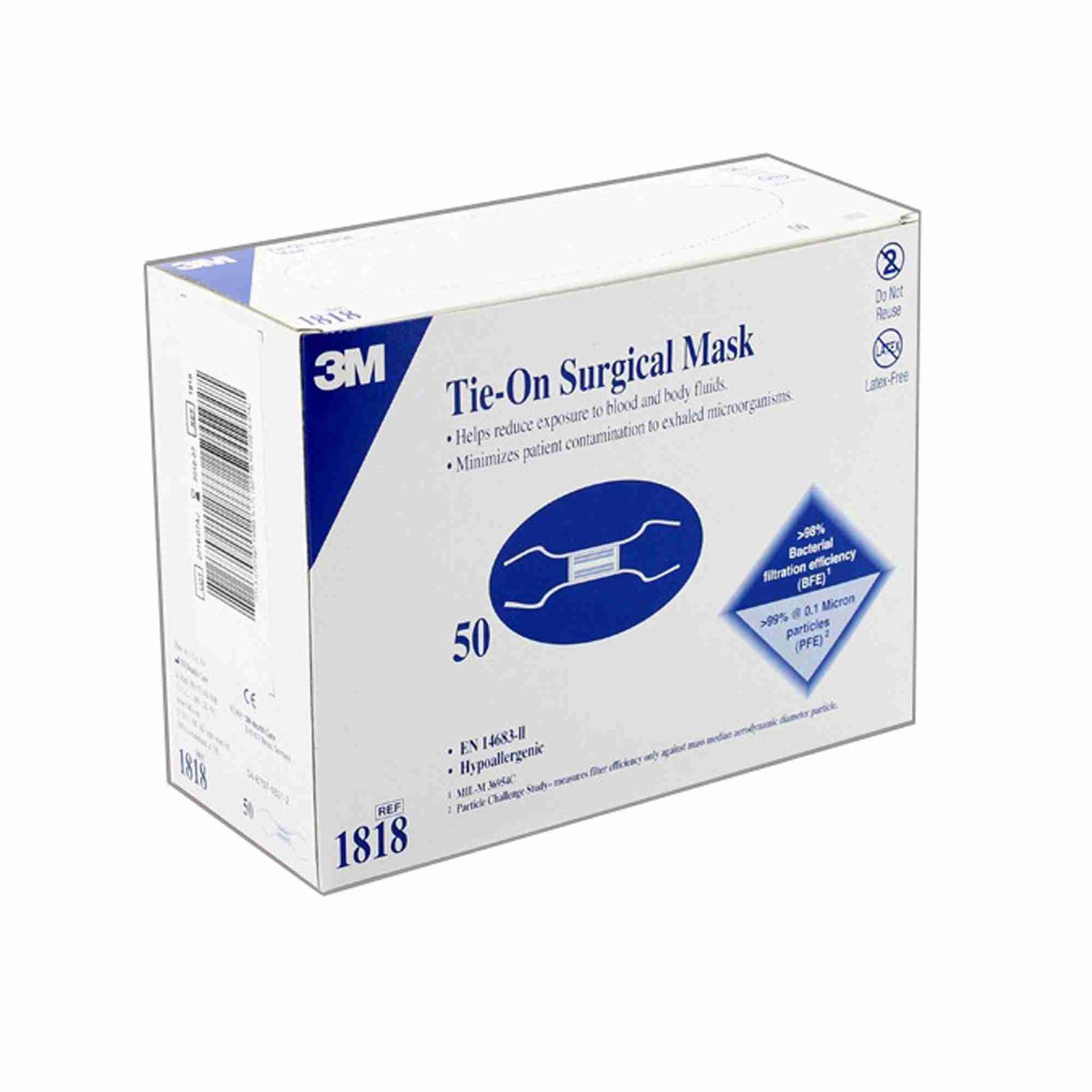 - 3M™ tie-on surgical mask has bi-directional pleats that provide size flexibility