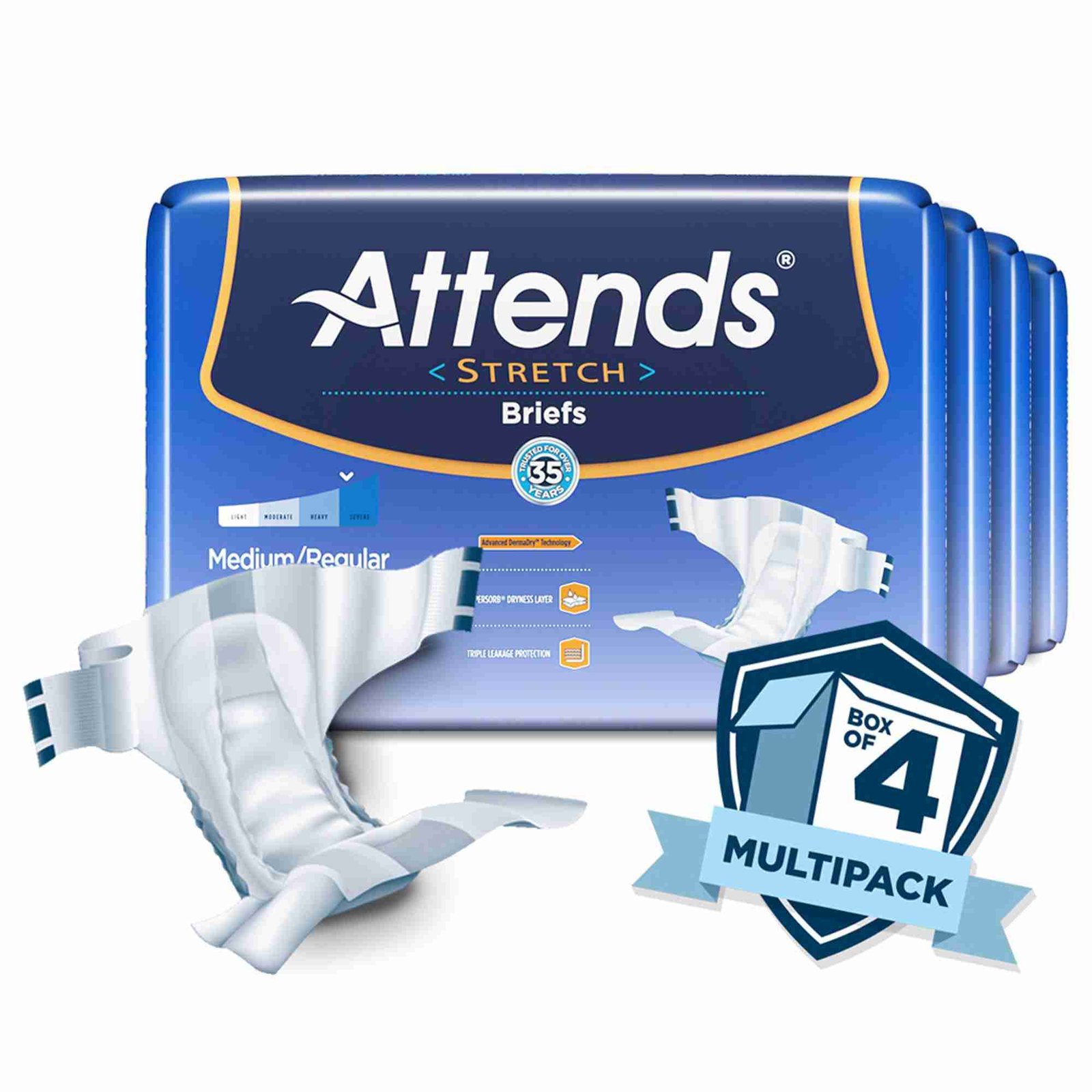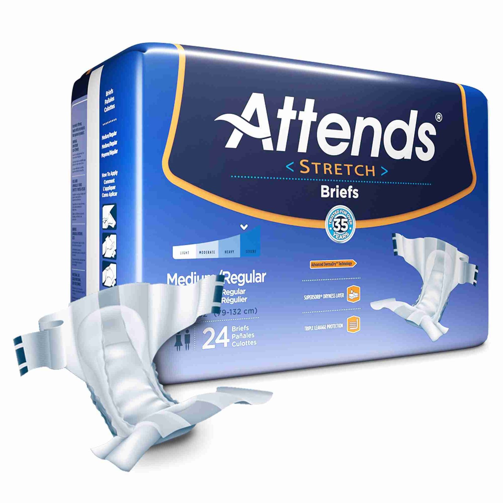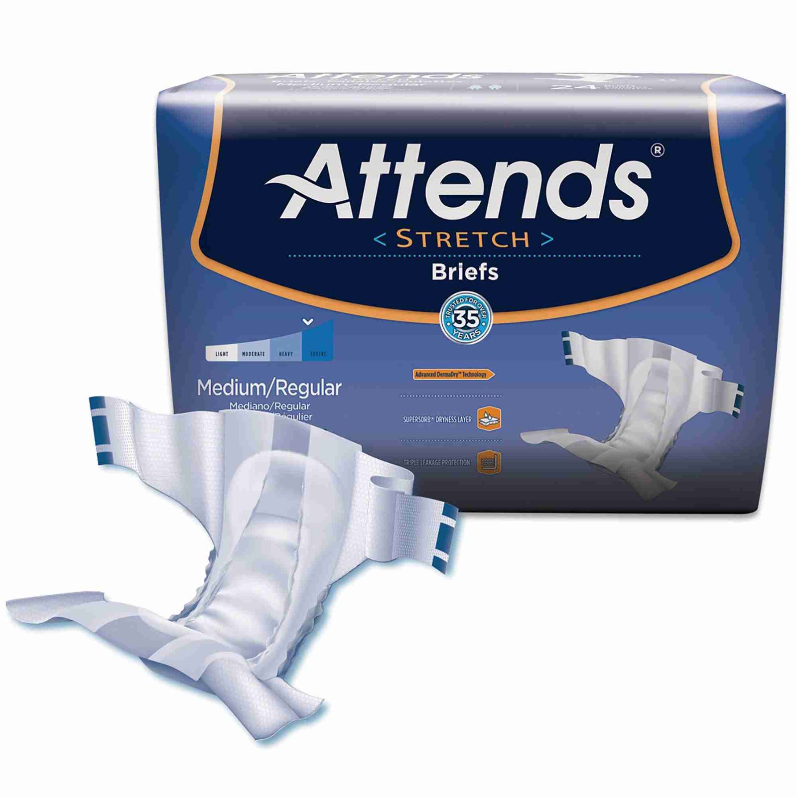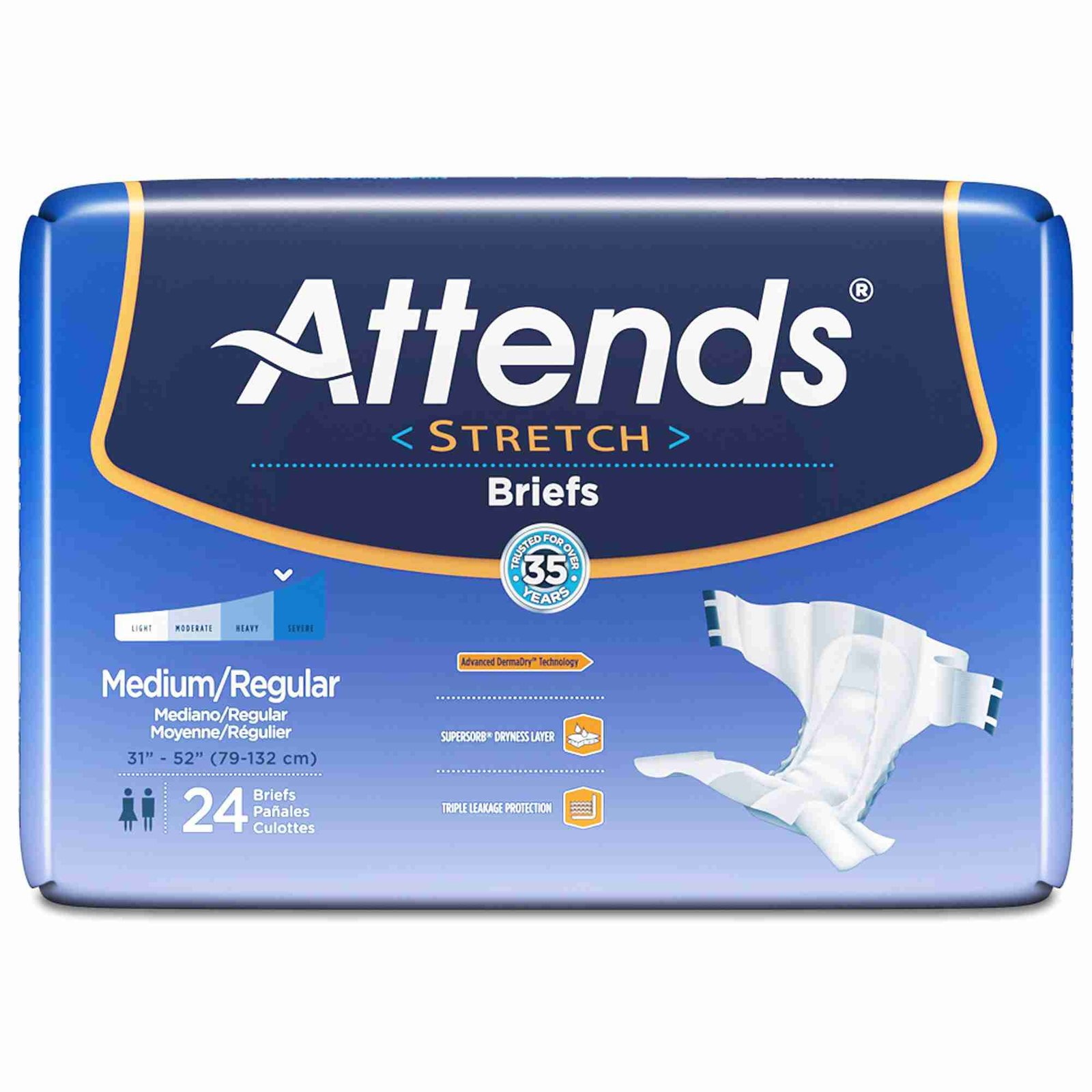 Unisex Adult Incontinence Brief Attends® Stretch Medium / Regular Disposable Heavy Absorbency
