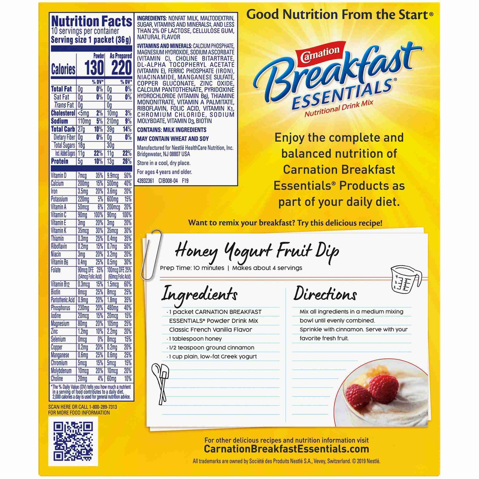 - The vanilla Carnation Breakfast Essentials helps maintain strong and healthy bones