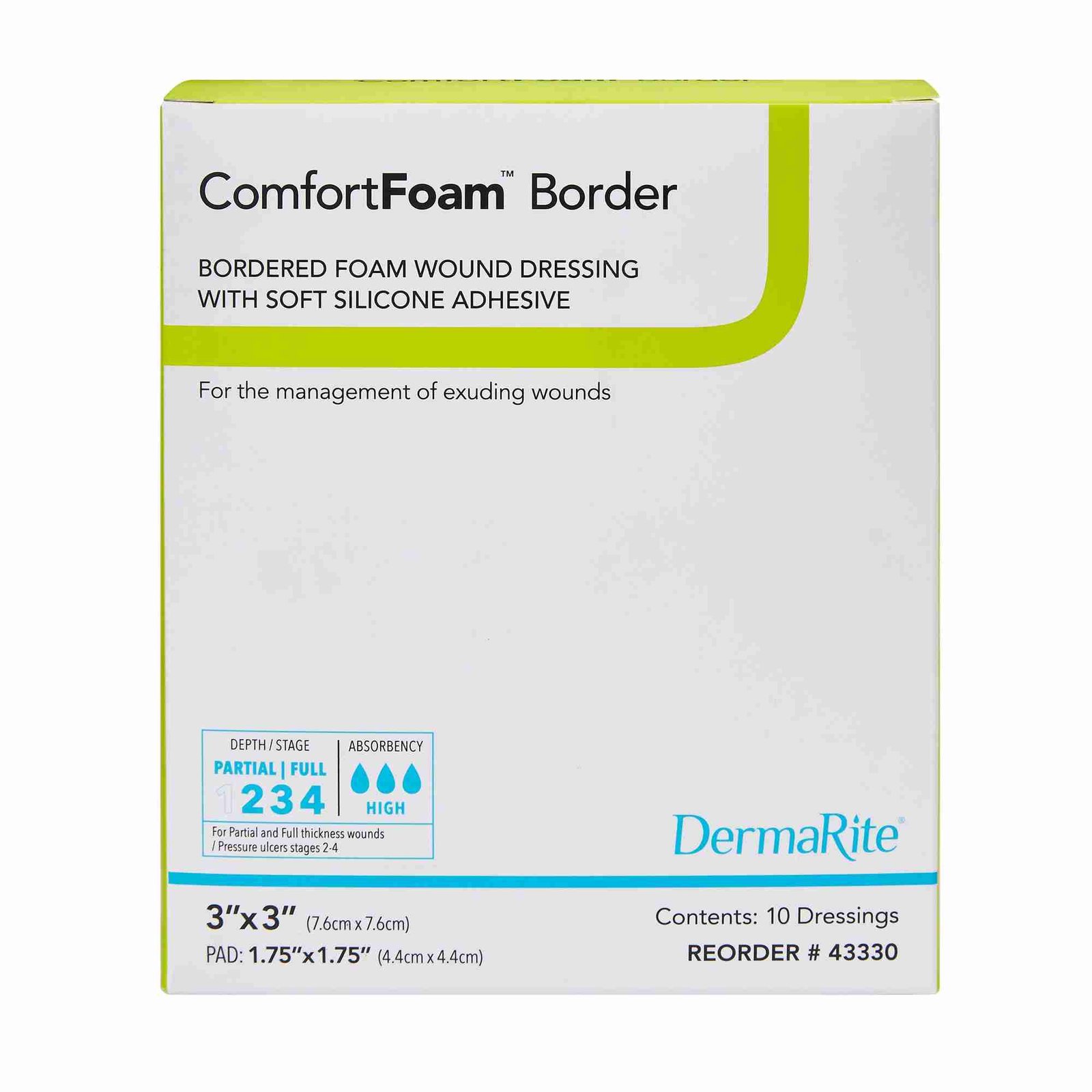 - The 3- x 3-inch DermaRite ComfortFoam border facilitates faster and proper healing of wounds