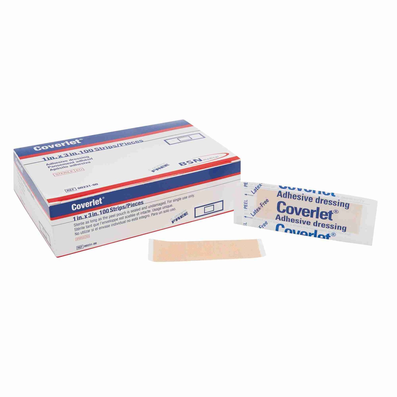 - Coverlet adhesive strips keep cuts, scrapes and burns protected and covered