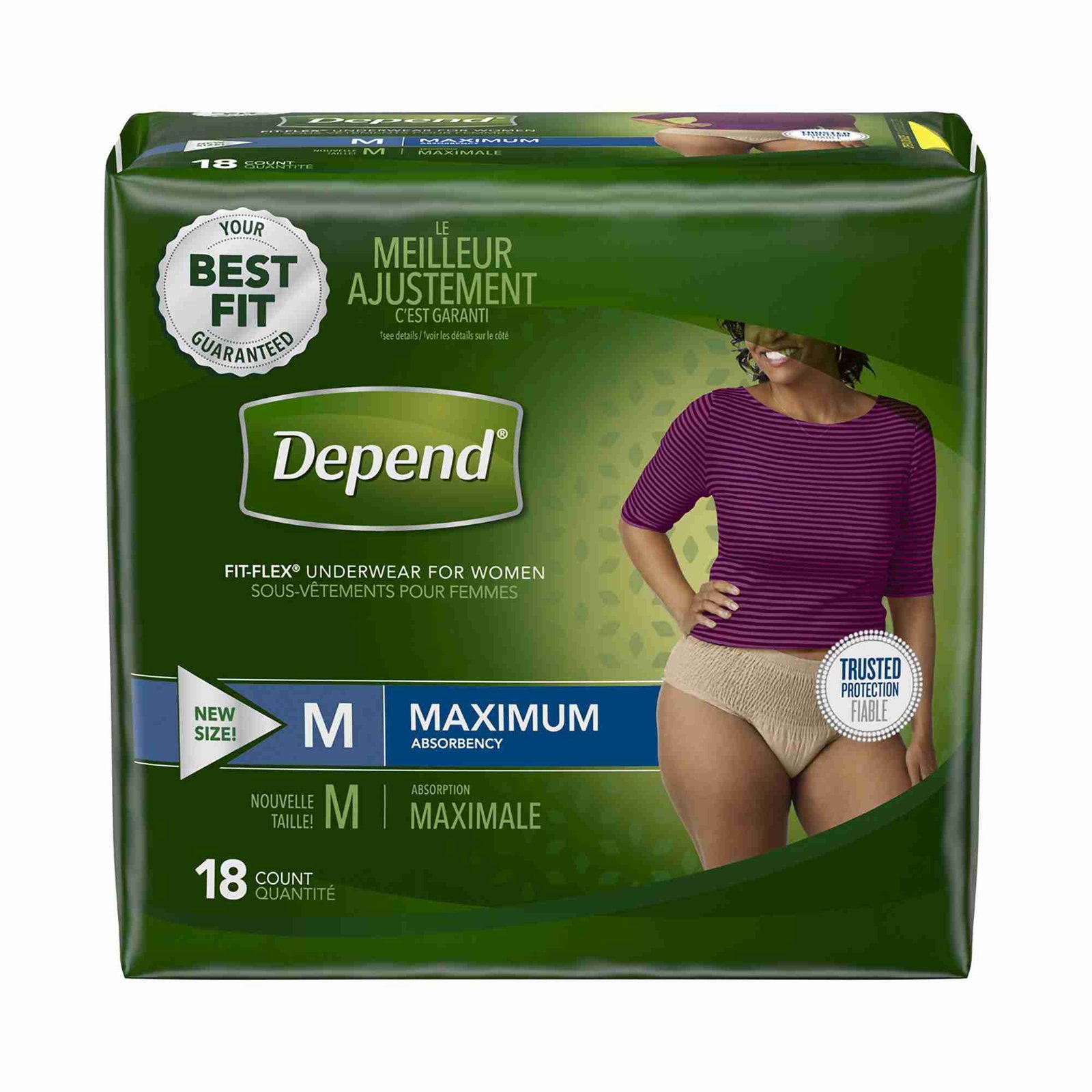 - Depend® FIT-FLEX® women’s medium underwear provides maximum incontinence protection