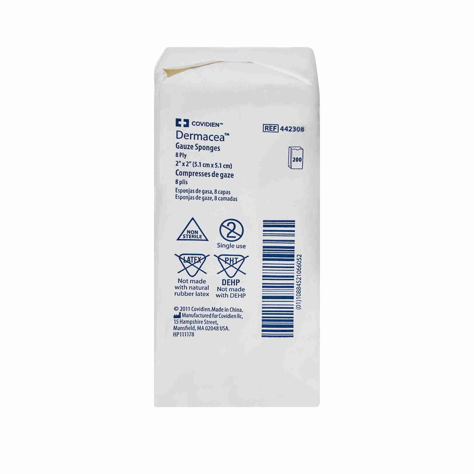 | Invoice Description | SPONGE, GAUZE DERMACEA N/S 8PLY 2"X2" (200/BG 25BG/CS) |
