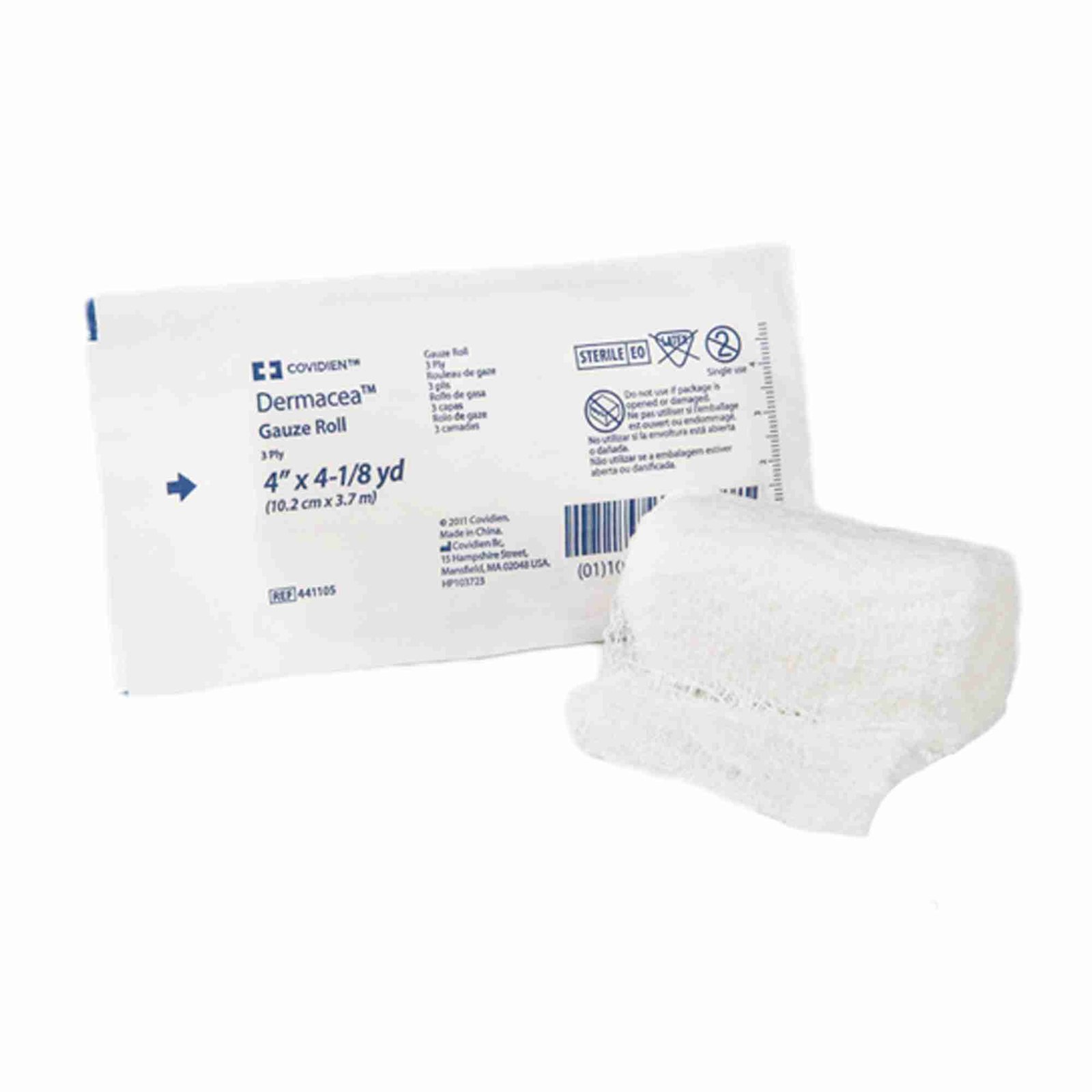 Fluff Bandage Roll Dermacea™ Gauze 3-Ply 4 Inch X 4-1/8 Yard Roll Shape Sterile