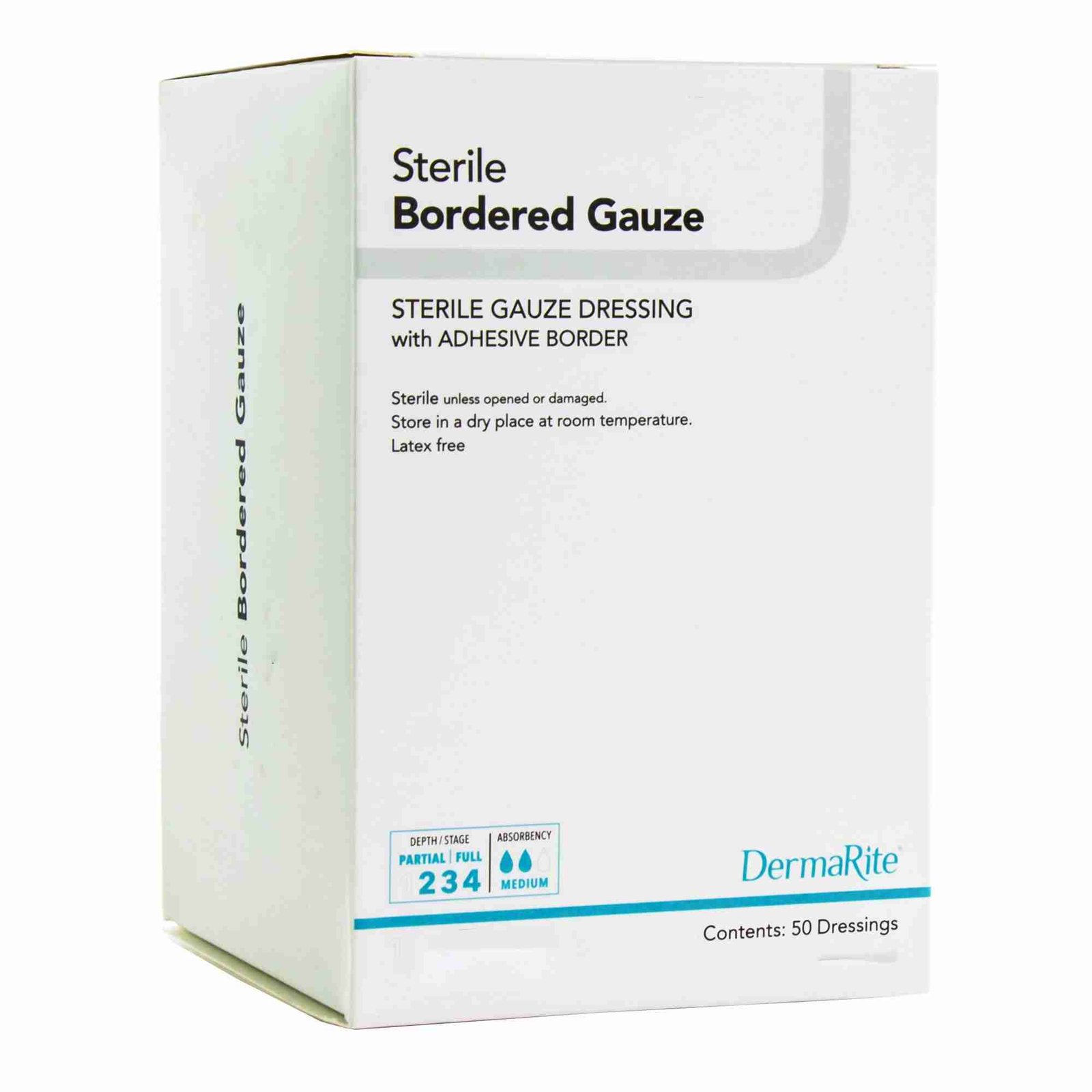 Adhesive Dressing DermaRite® Bordered Gauze 2 X 2 Inch Gauze Square White Sterile
