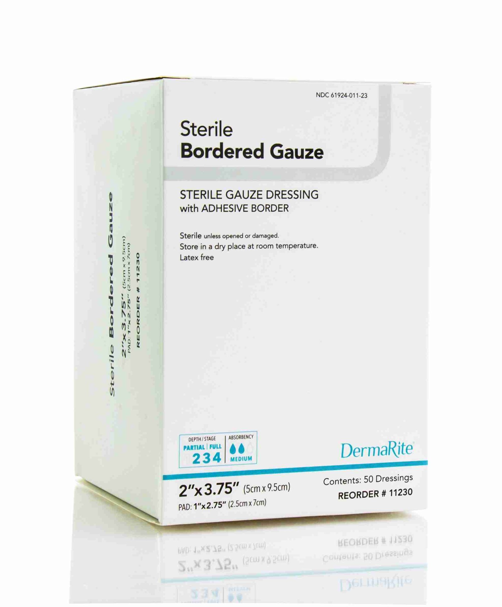 Adhesive Dressing DermaRite® Bordered Gauze 2 X 3-1/4 Inch Gauze Square White Sterile