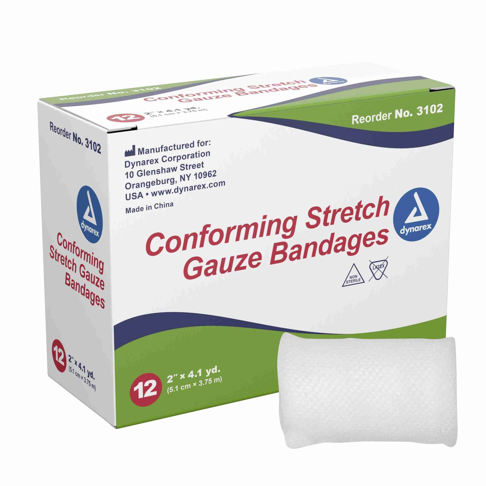 Dynarex® NonSterile Conforming Bandage, 2 Inch x 4-1/10 Yard