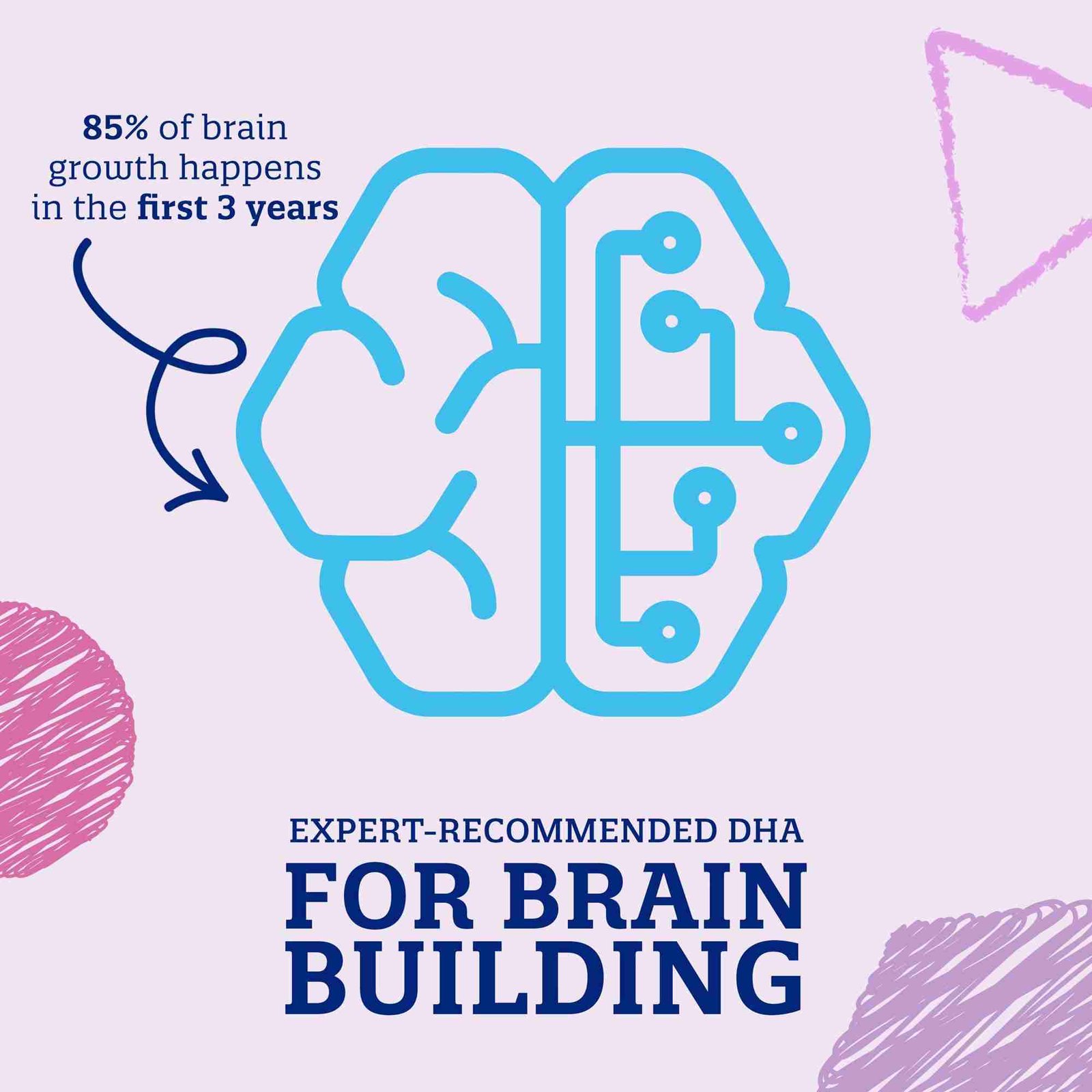 - DHA for cognitive development plus 21 other nutrients that complement a young child’s diet, including iron
