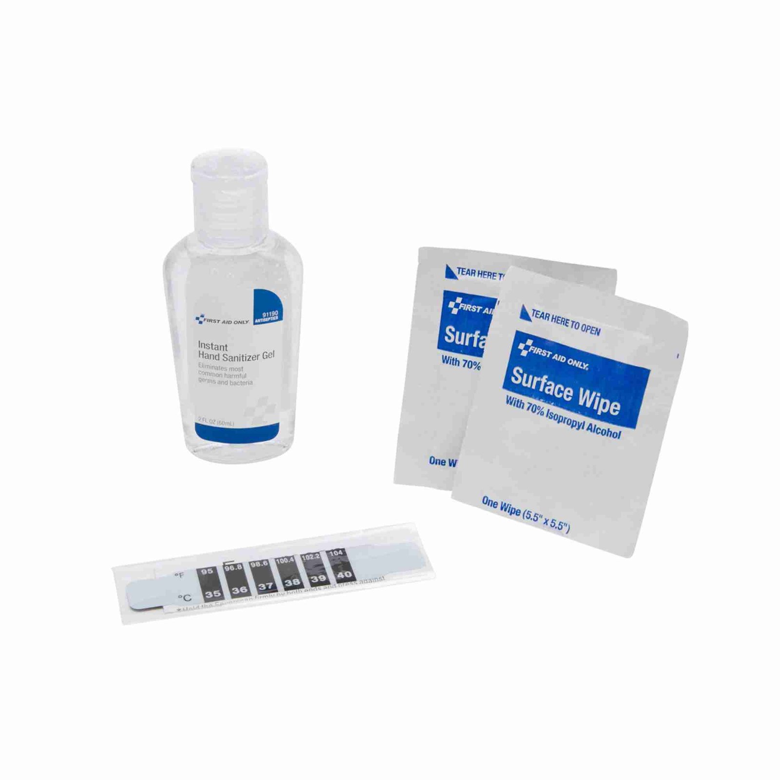 - The First Aid Only Kit includes a 5 day supply of essential PPE products to keep individuals safe from harmful germs