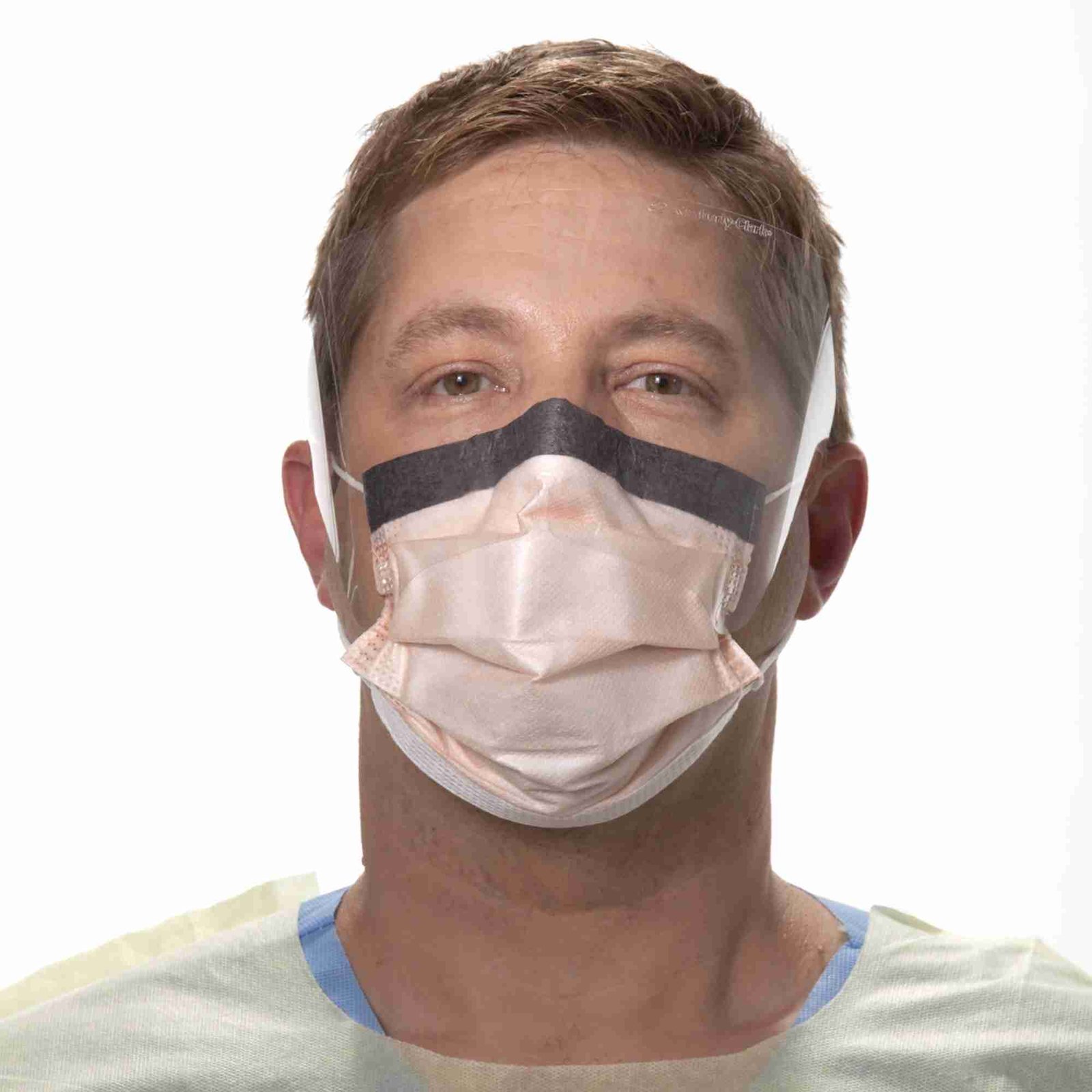 - The Halyard™ FluidShield orange procedure mask with an eye shield is suitable for clinical environments where contact with bodily fluids is possible