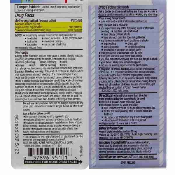 - These 220-mg naproxen sodium tablets relieve pain and swelling caused by arthritis or bursitis