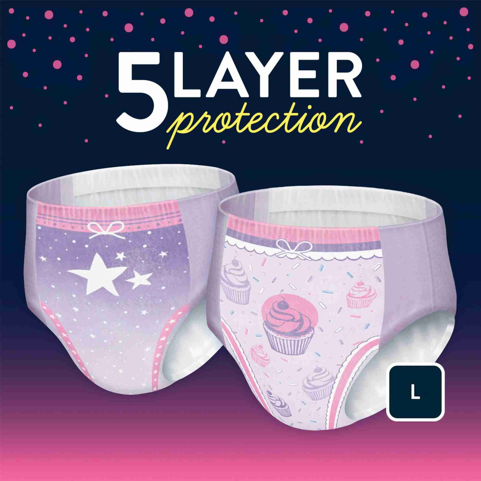 - Double leg barriers help prevent leaks with five layer protection that keeps them dry all night