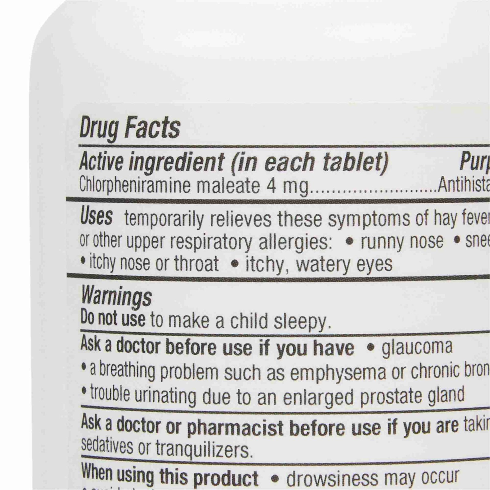- 4 milligrams of chlorpheniramine maleate