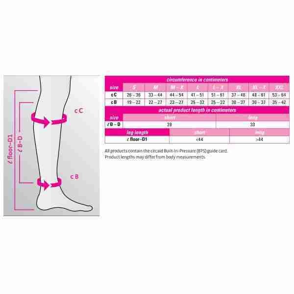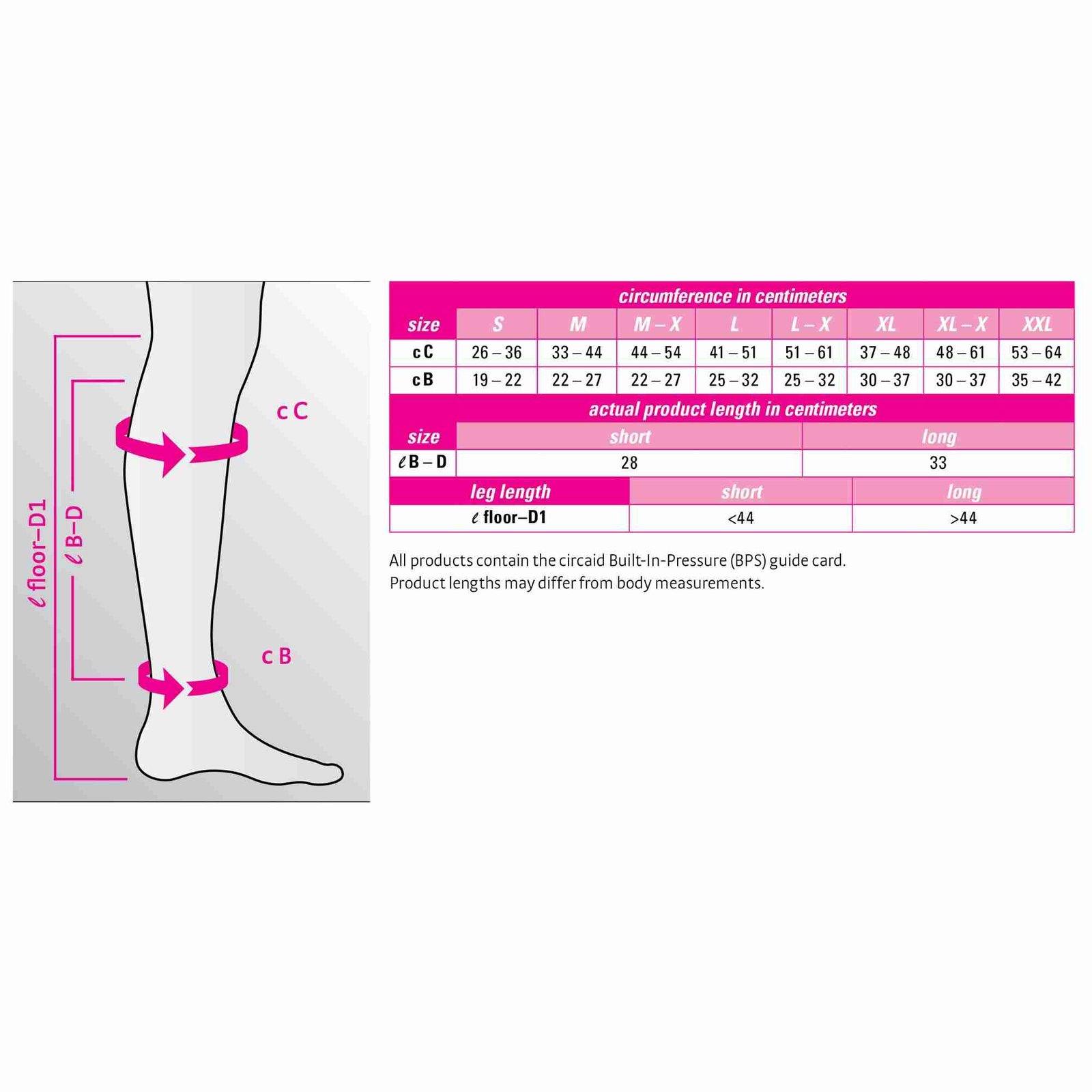- Compression option: 20-30, 30-40, or 40-50 mmHg