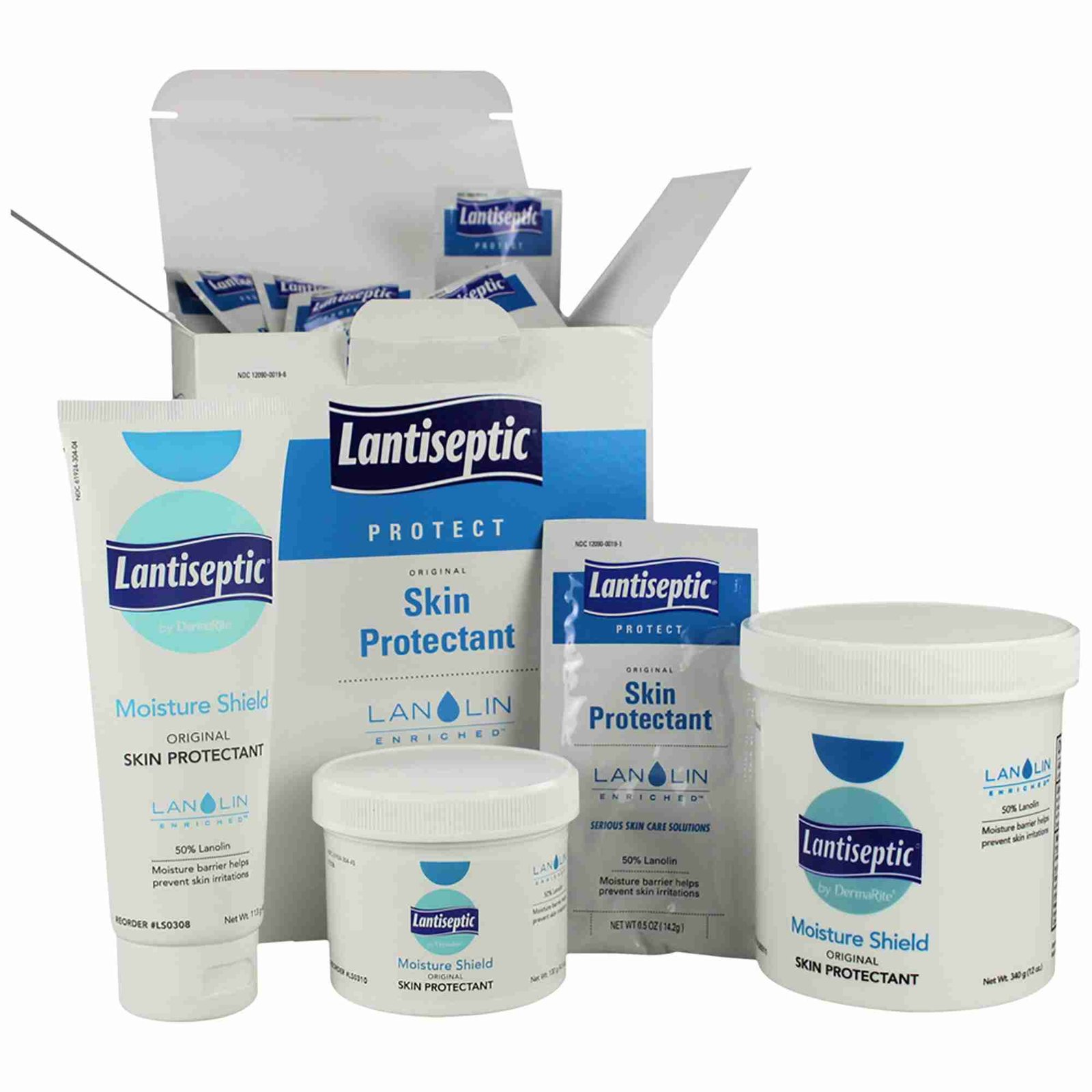 - DermaRite® skin protectant is made with 50% lanolin to form a barrier between the skin and moisture
