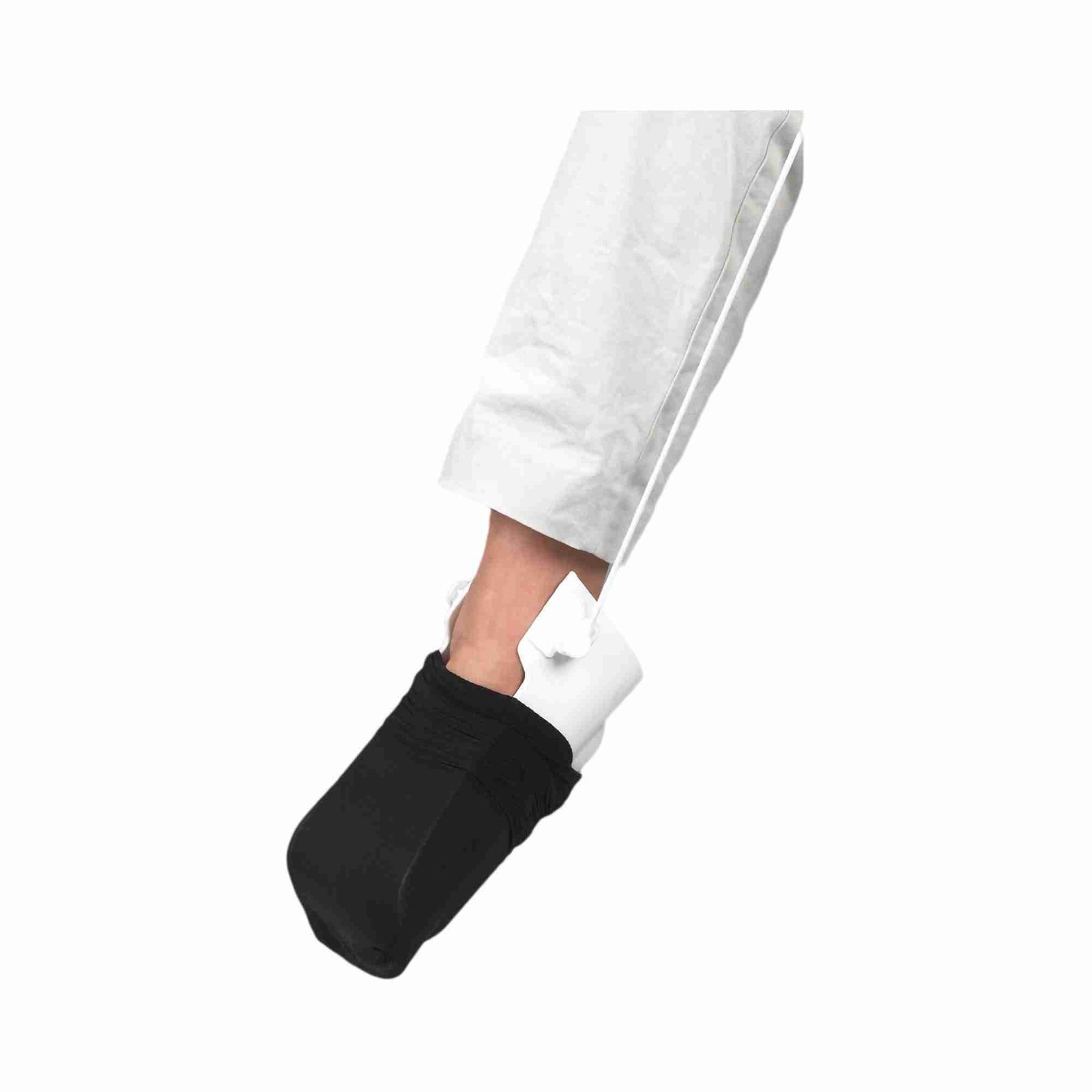 • Rigid sock aid has an indented channel on the inside that acts as a heel guide and keeps the foot in position making it easier to put on hosiery