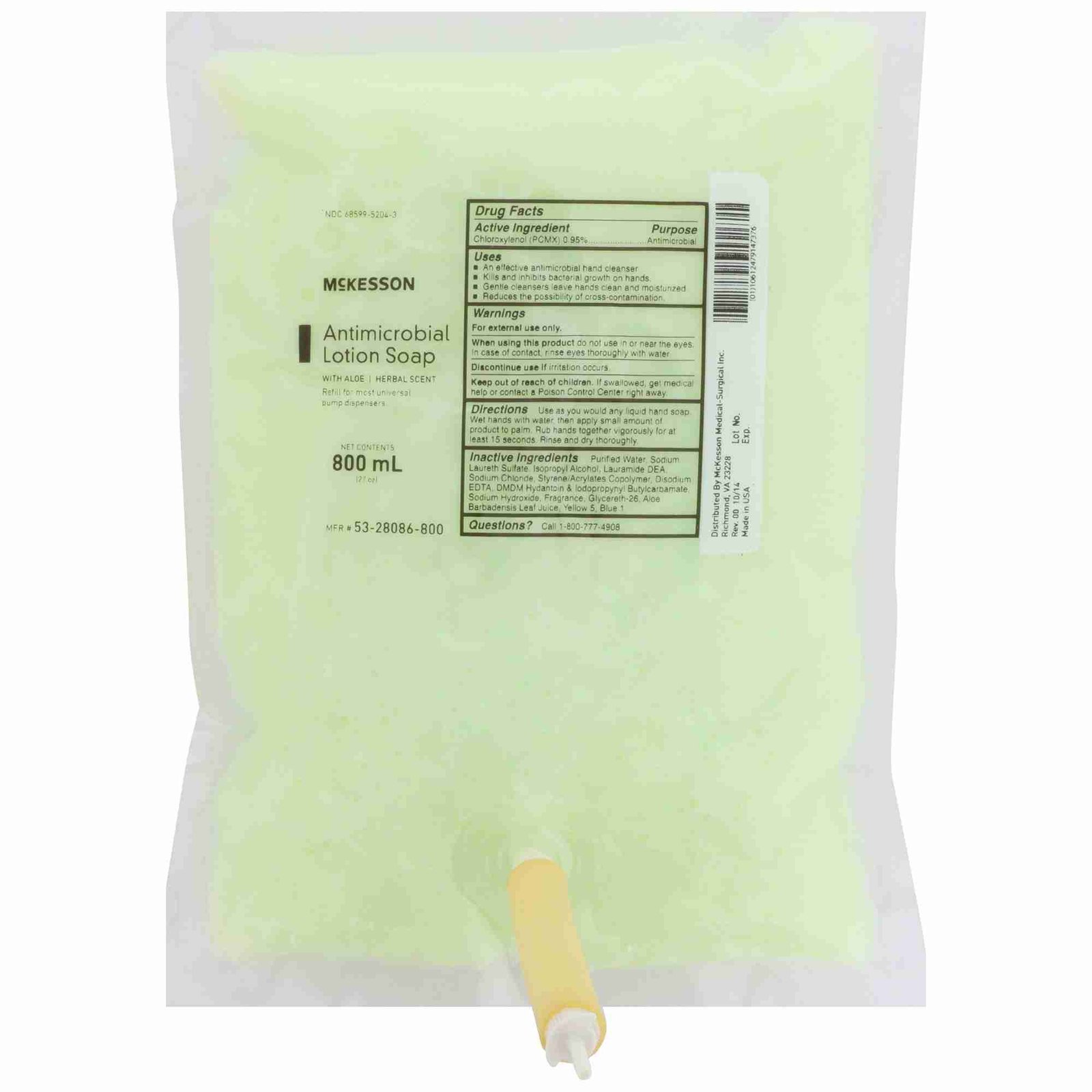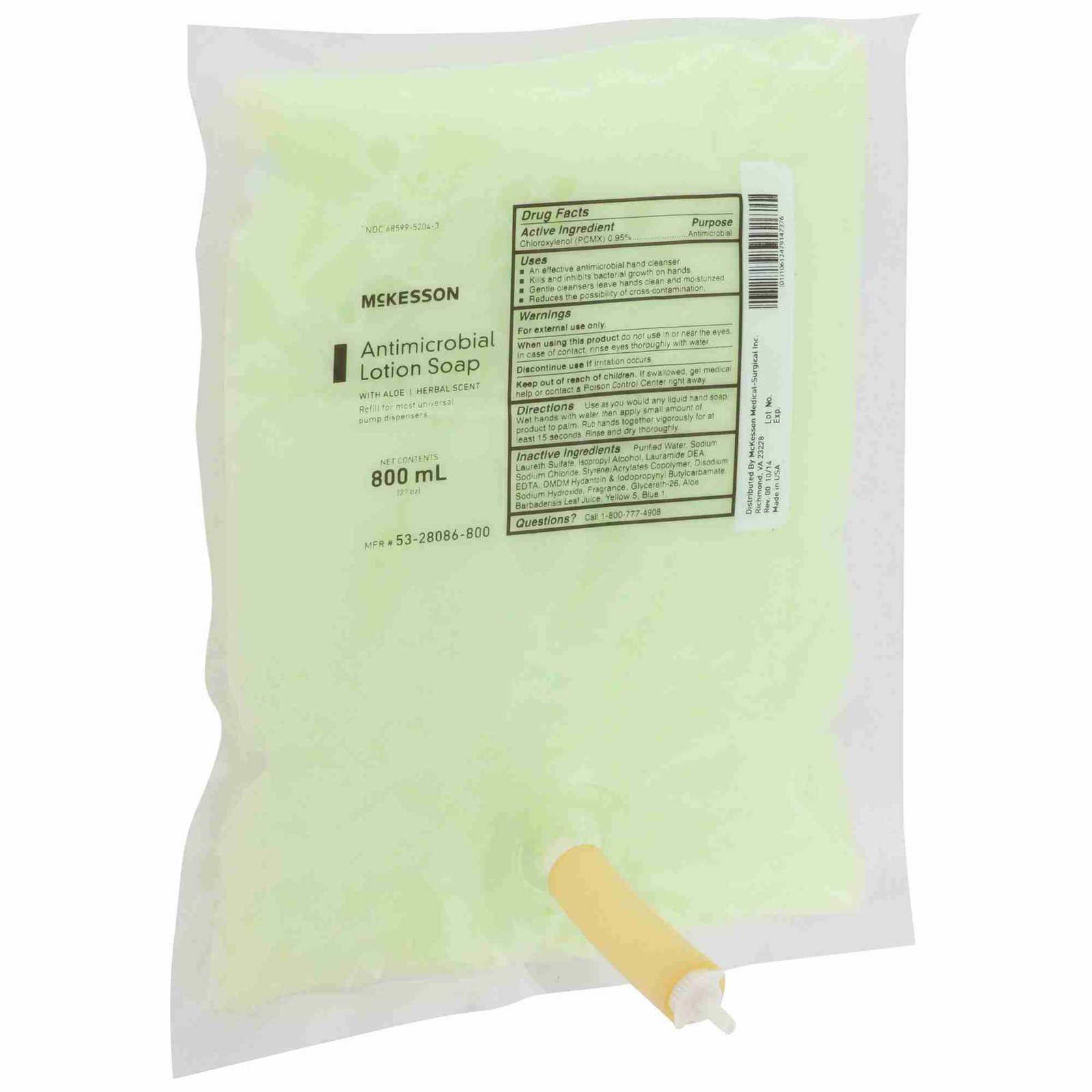 - The 800 ml McKesson antimicrobial lotion soap helps to reduce the risk of contracting bacteria by protecting your hands against cross-contamination