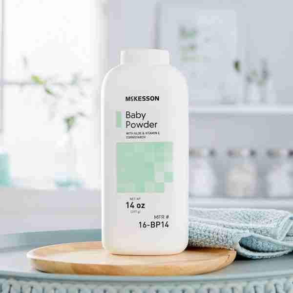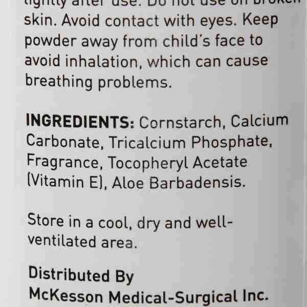 - McKesson baby powder contains cornstarch, which is gentle and non-carcinogenic