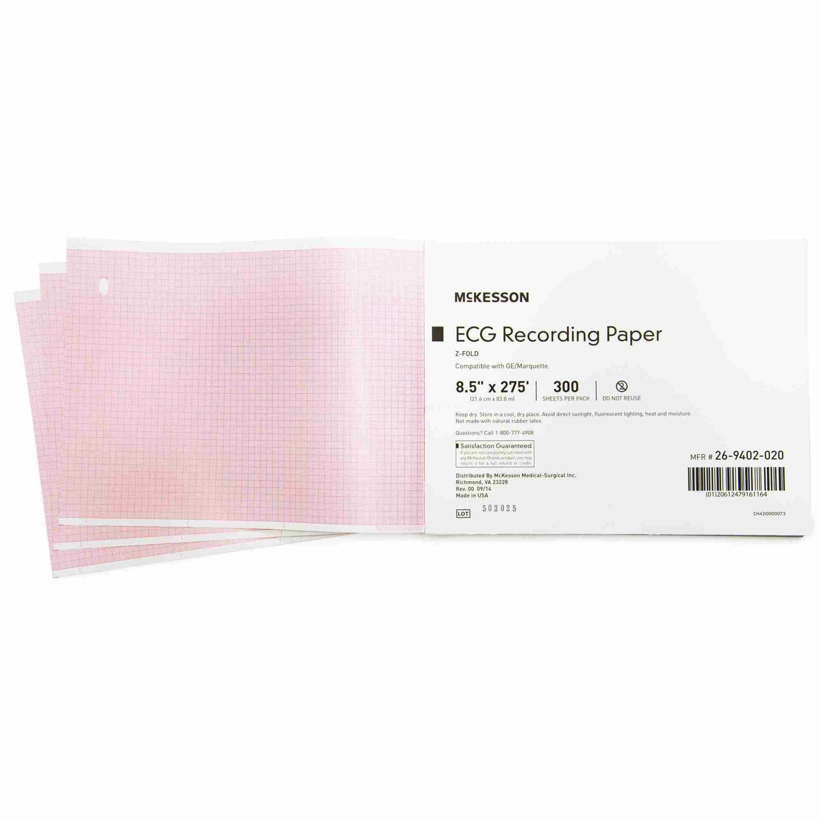 Diagnostic Recording Paper McKesson Thermal Paper 8-1/2 Inch X 275 Foot Z-Fold Red Grid