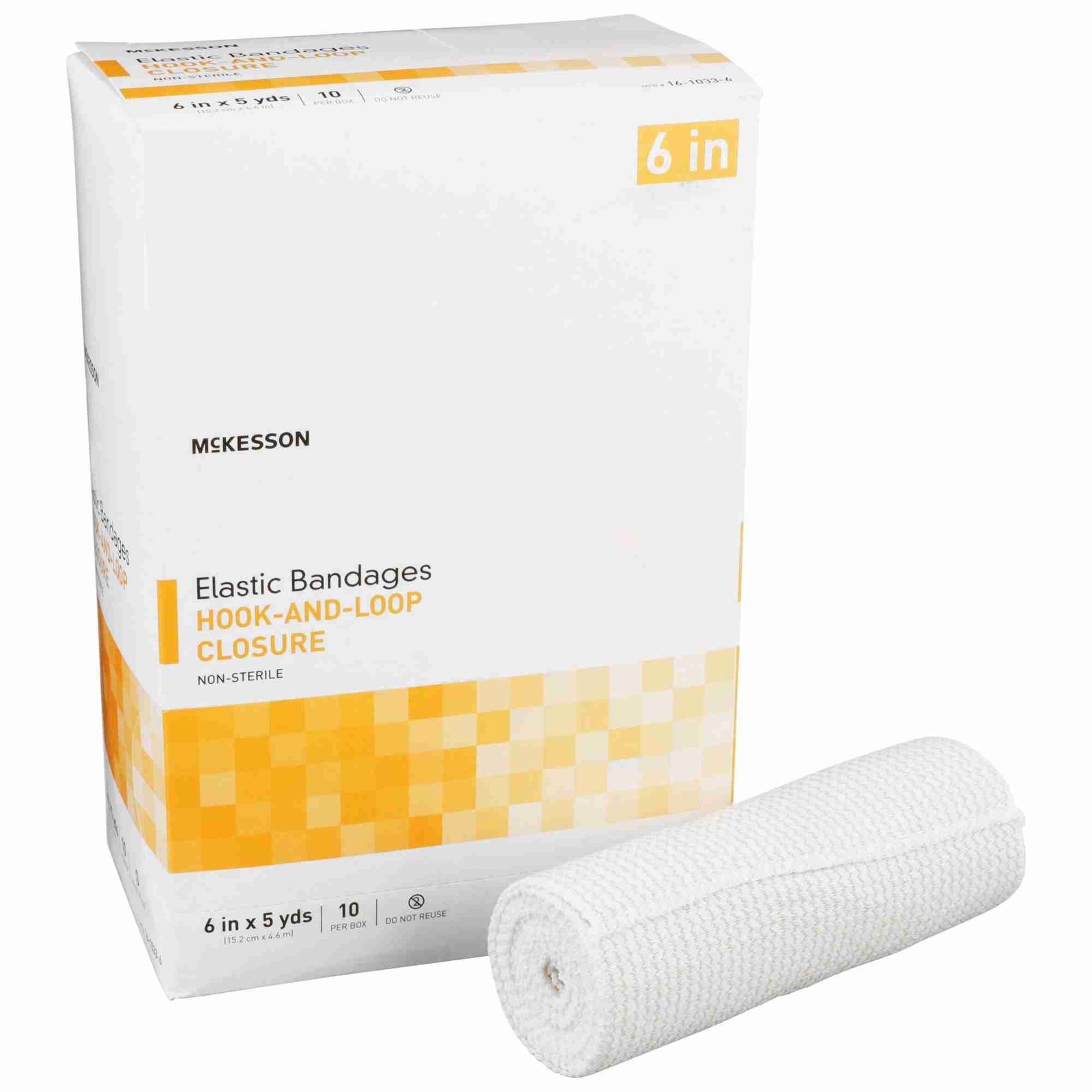McKesson Hook and Loop Closure Elastic Bandage, 6 Inch x 5 Yard