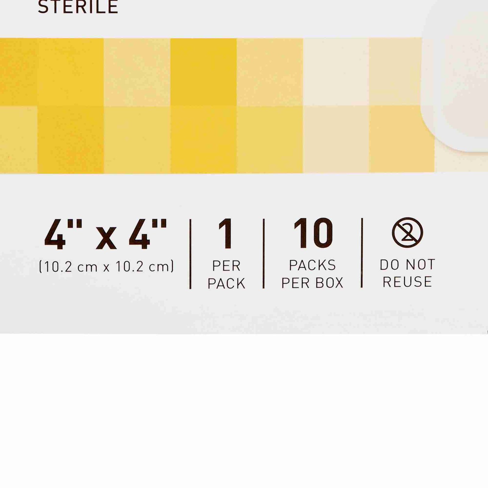 - The 4- by 4-inch sterile dressing is semi-transparent to provide visualization