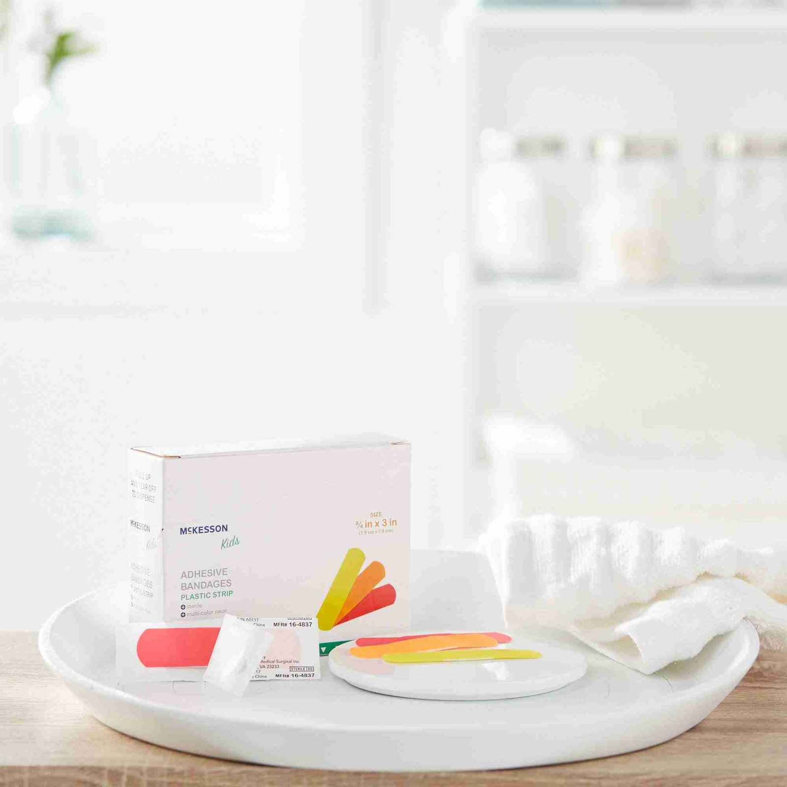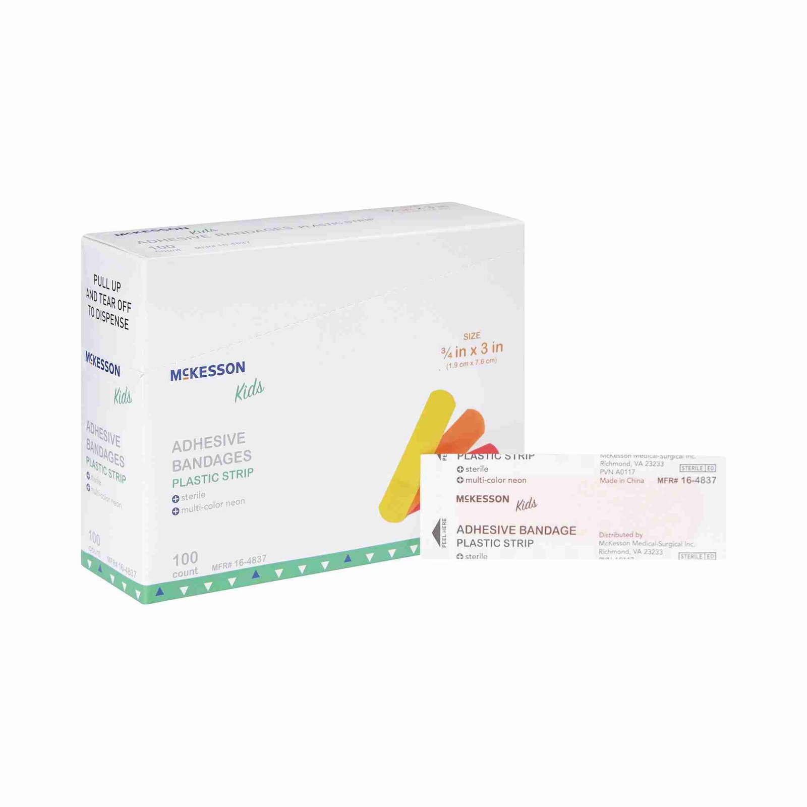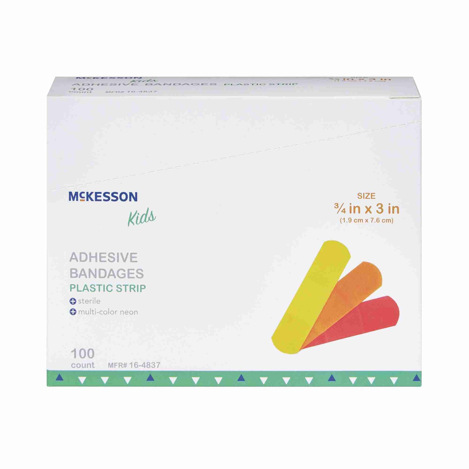 Adhesive Strip McKesson Kids™ 3/4 X 3 Inch Plastic Rectangle Neon Sterile