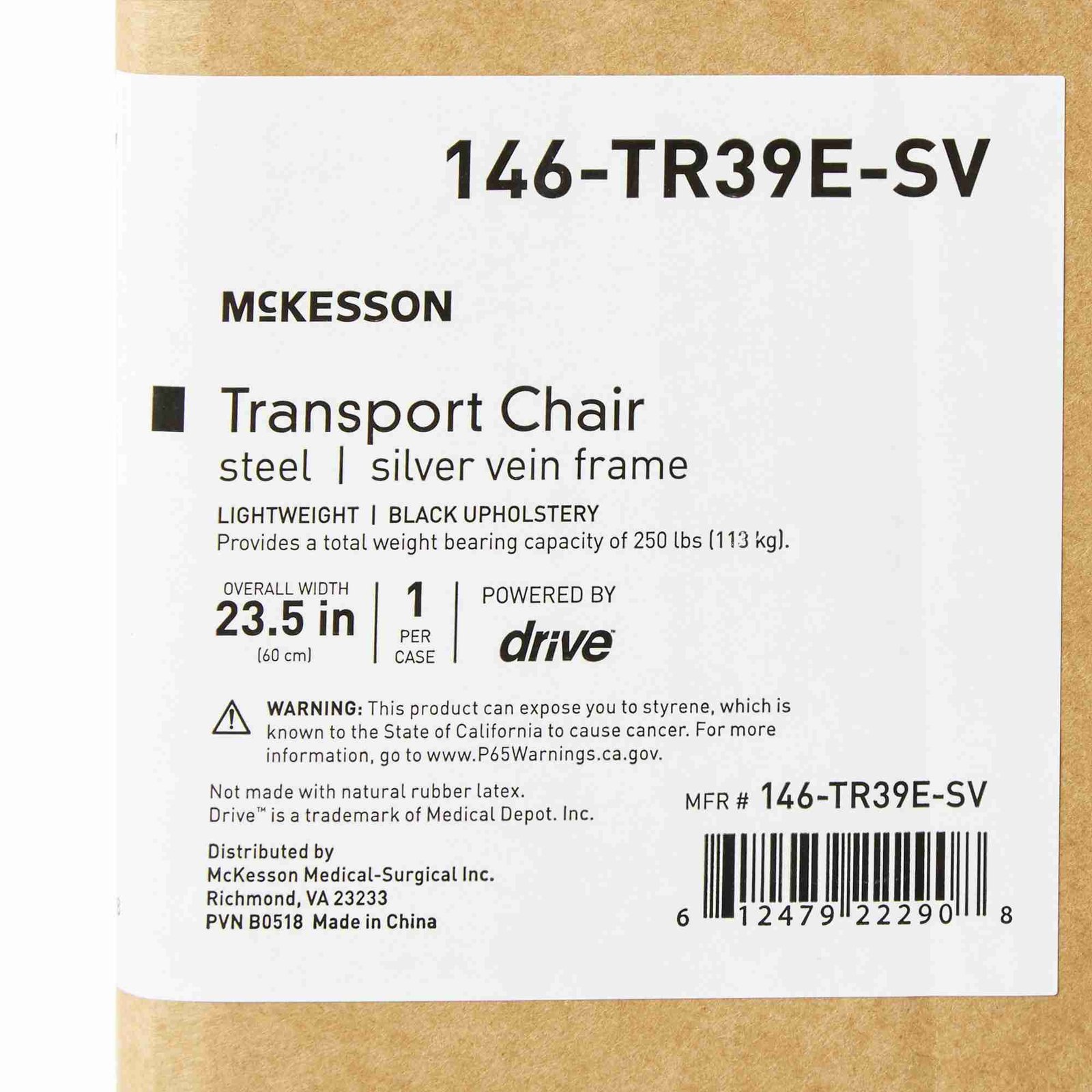McKesson Lightweight Transport Chair, Black with Silver Vein Finish