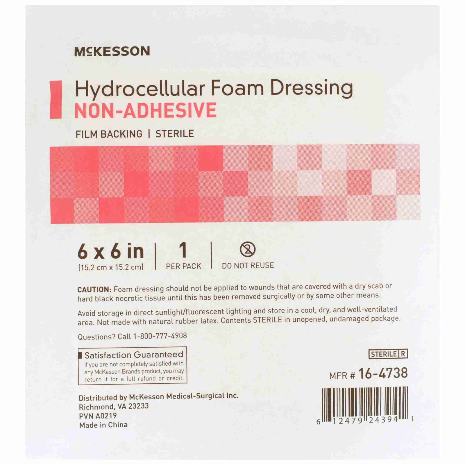 Foam Dressing McKesson 6 X 6 Inch Square Non-Adhesive without Border Sterile