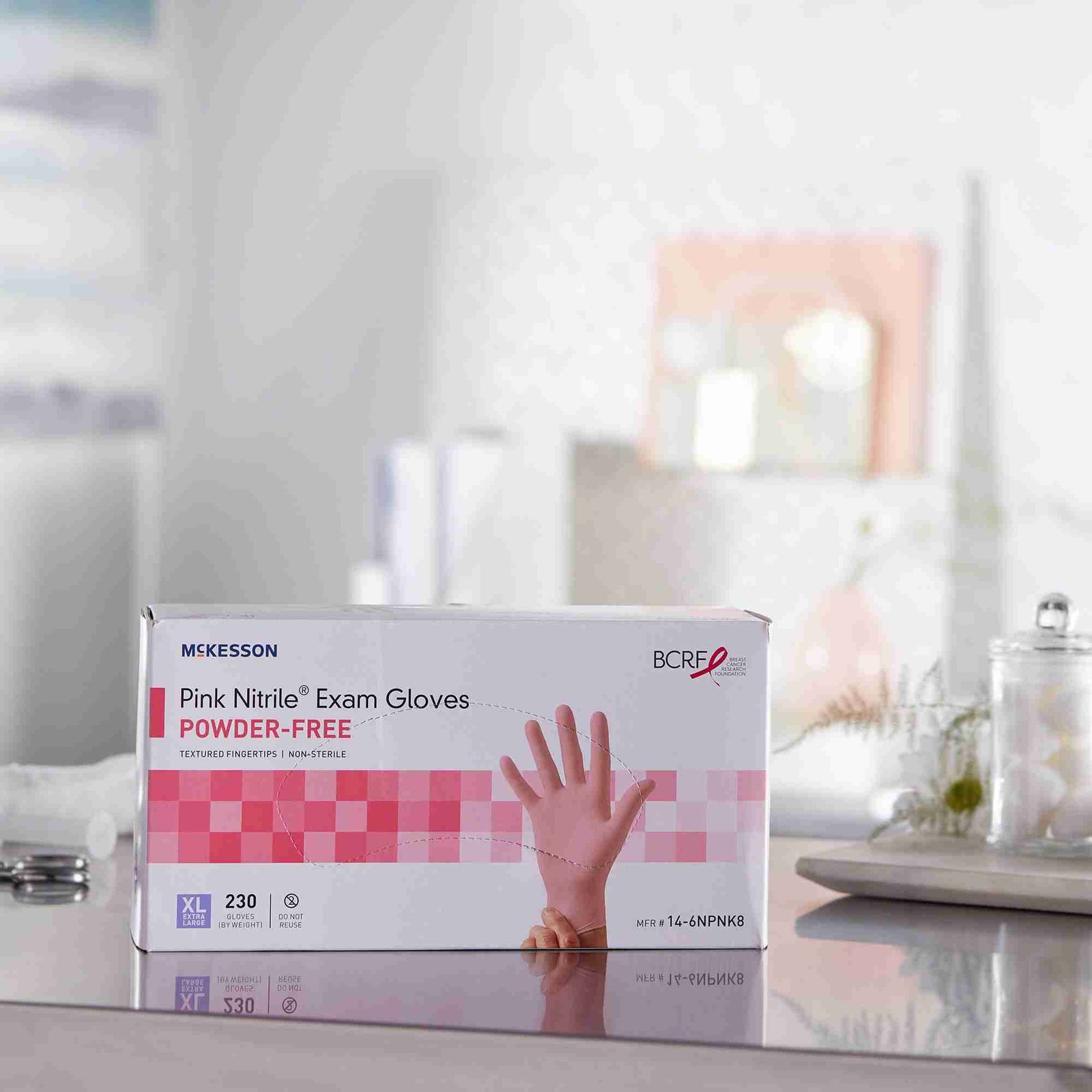 - McKesson pink nitrile exam gloves are made durable to reduce tears and punctures