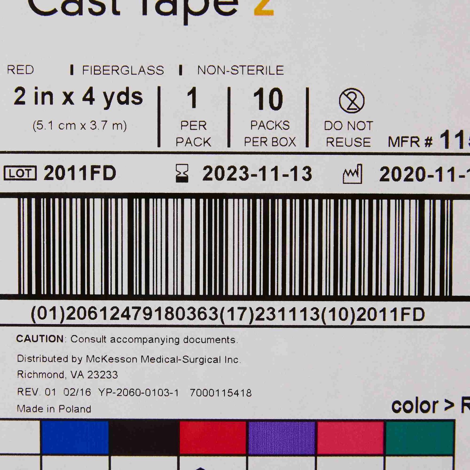 Cast Tape McKesson 2 Inch X 12 Foot Fiberglass Red