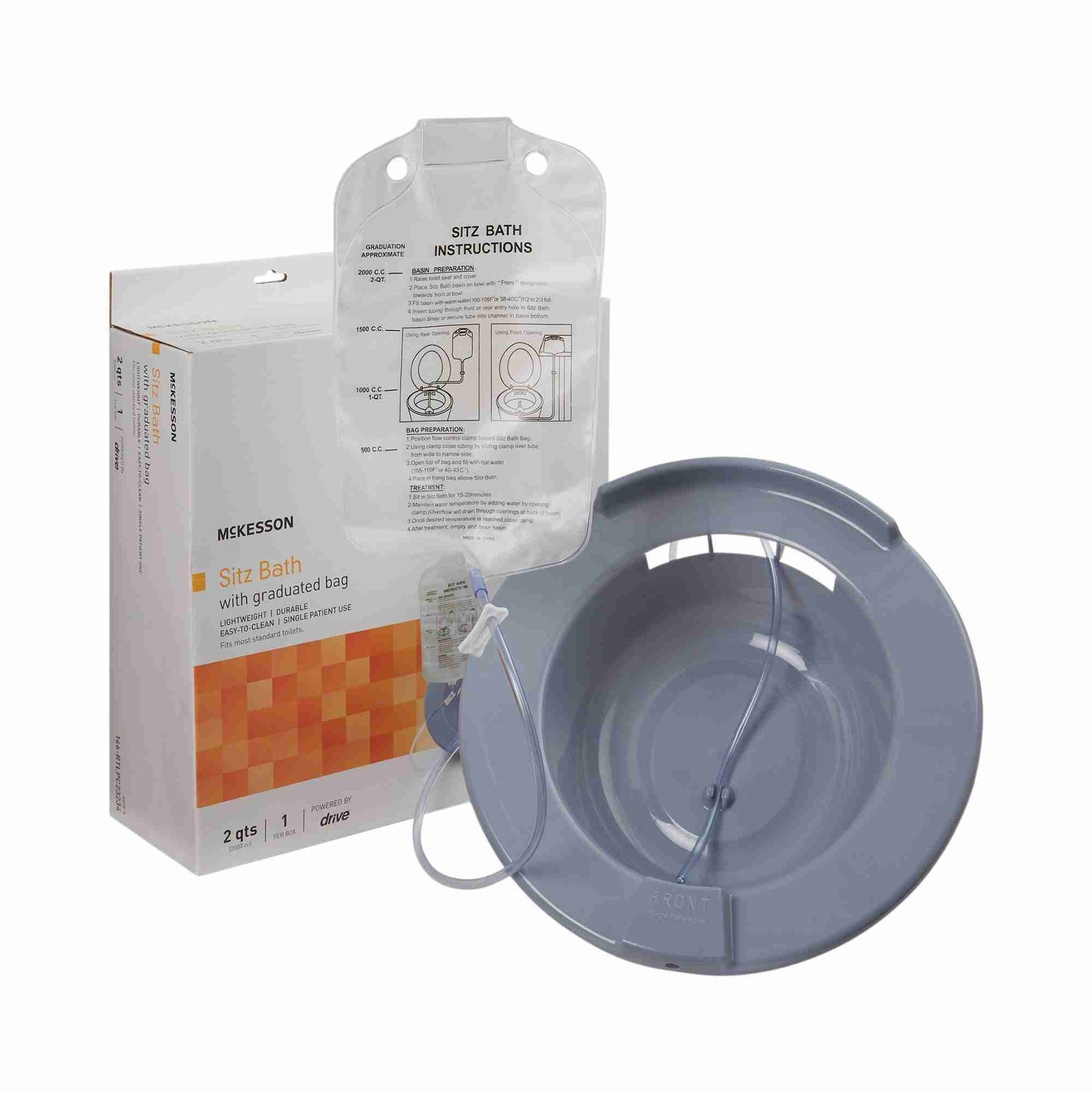 Sitz Bath McKesson Round Gray Plastic 2000 mL Bag Graduated, 500 mL Increments up to 2000 mL