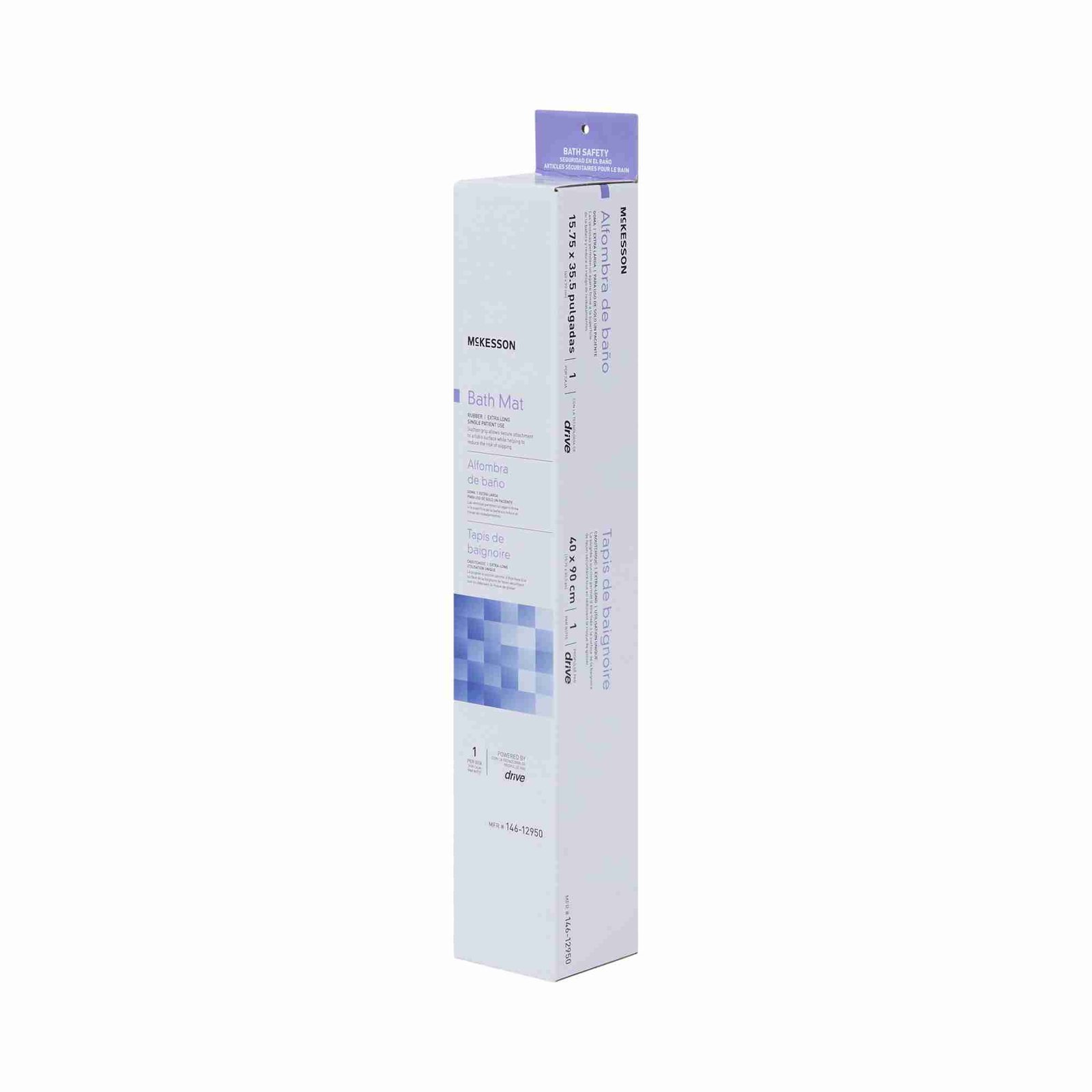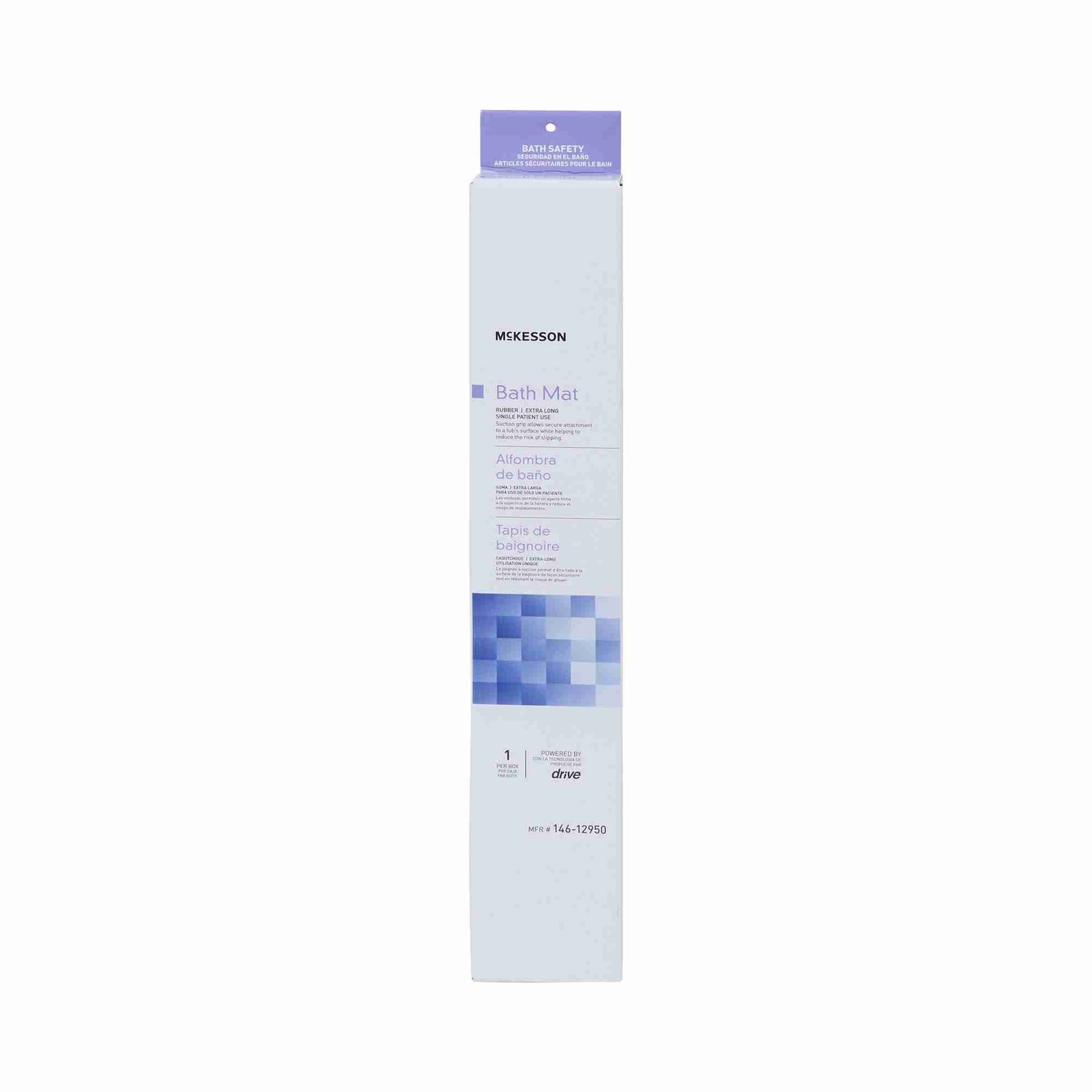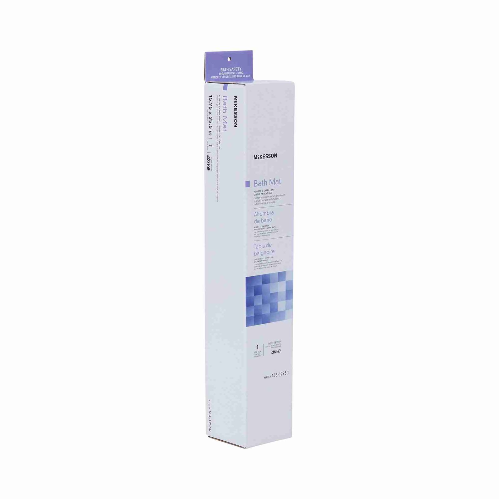 - Extra-long design features a large, textured surface for added safety and security in a tub or shower