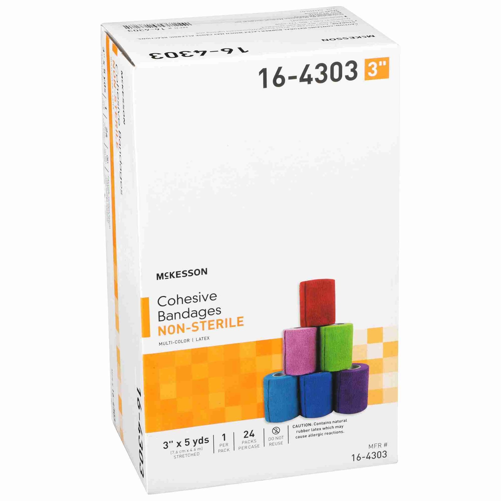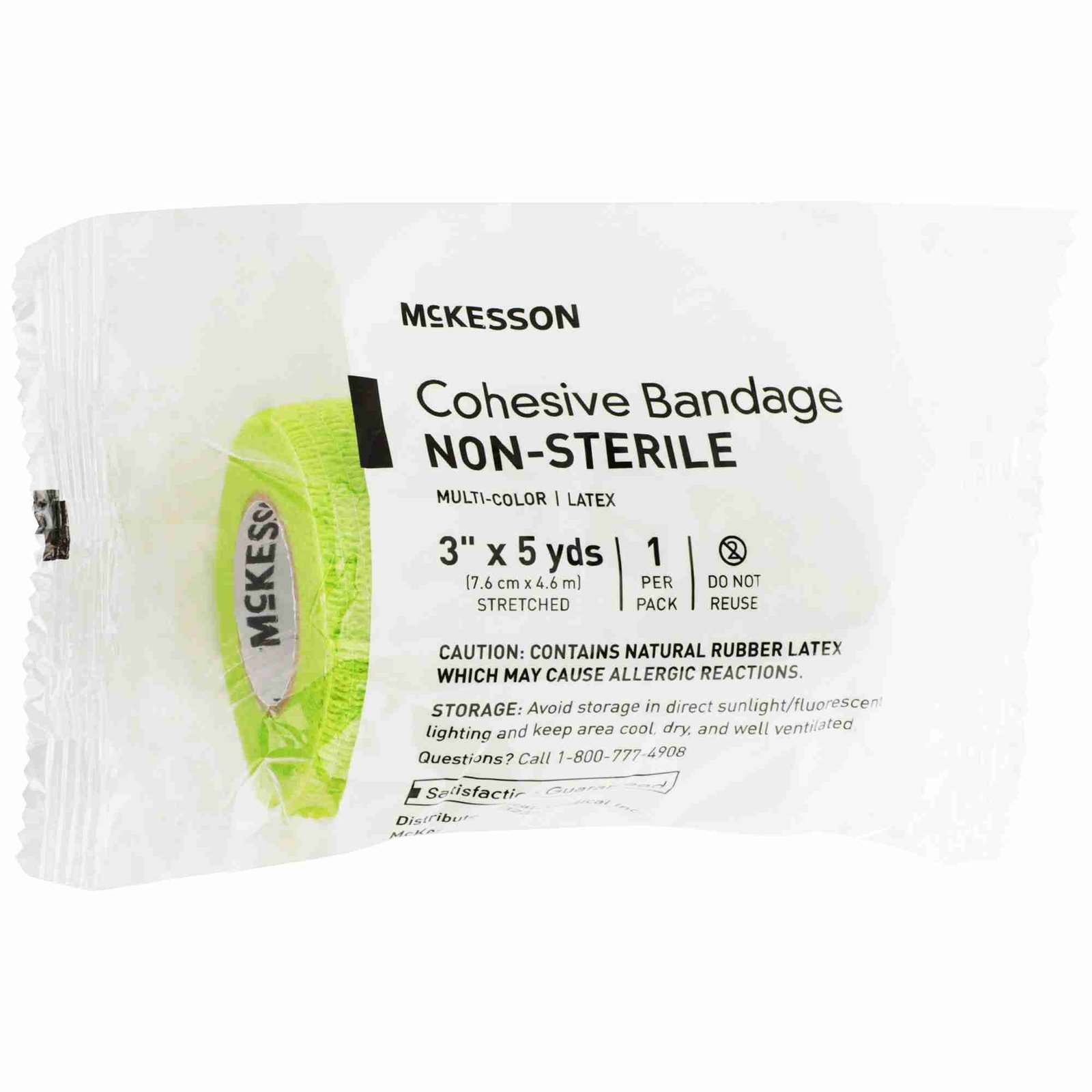 - McKesson cohesive bandages, 3 inches x 5 yards, provide standard compression, supporting sprains and strains or holding dressings in place