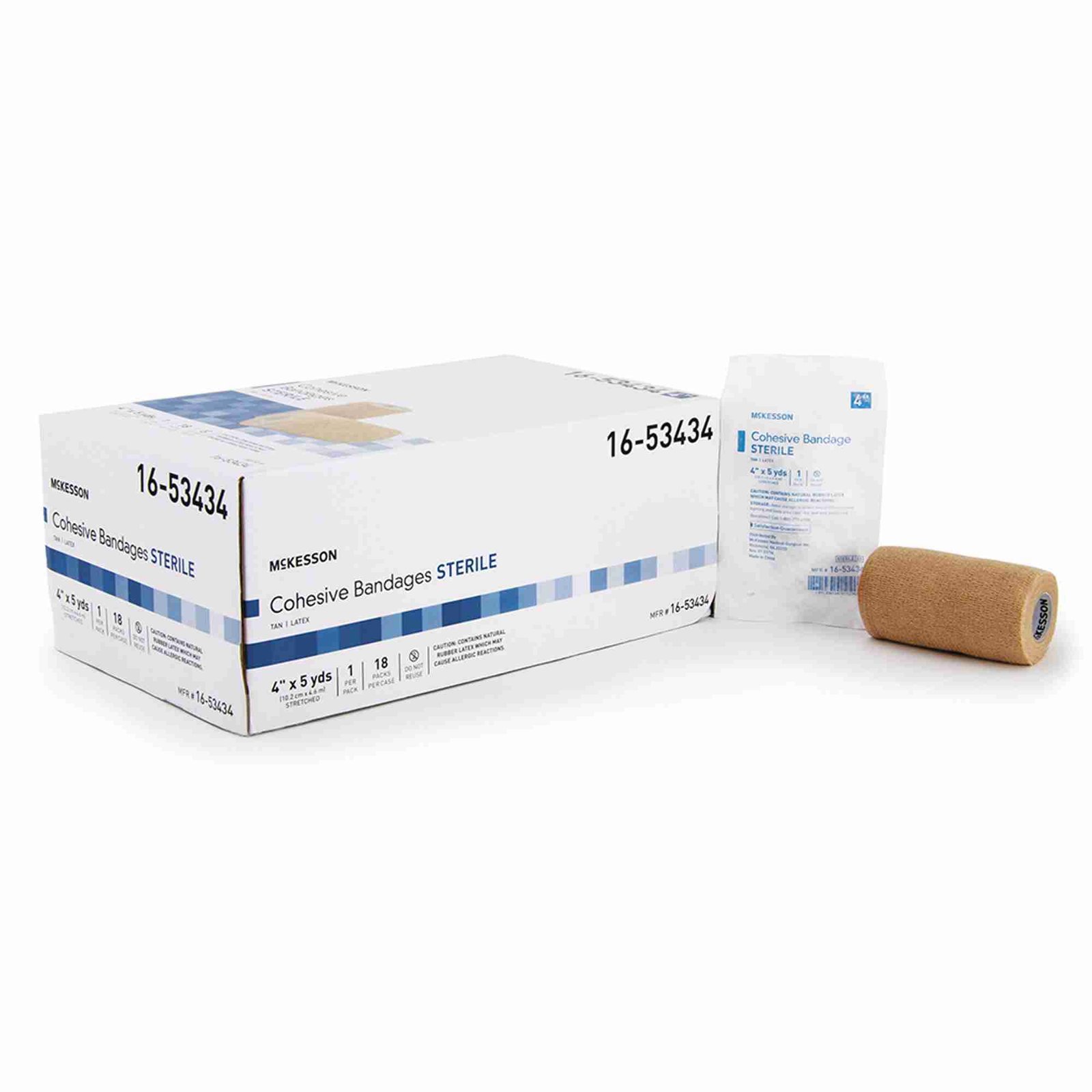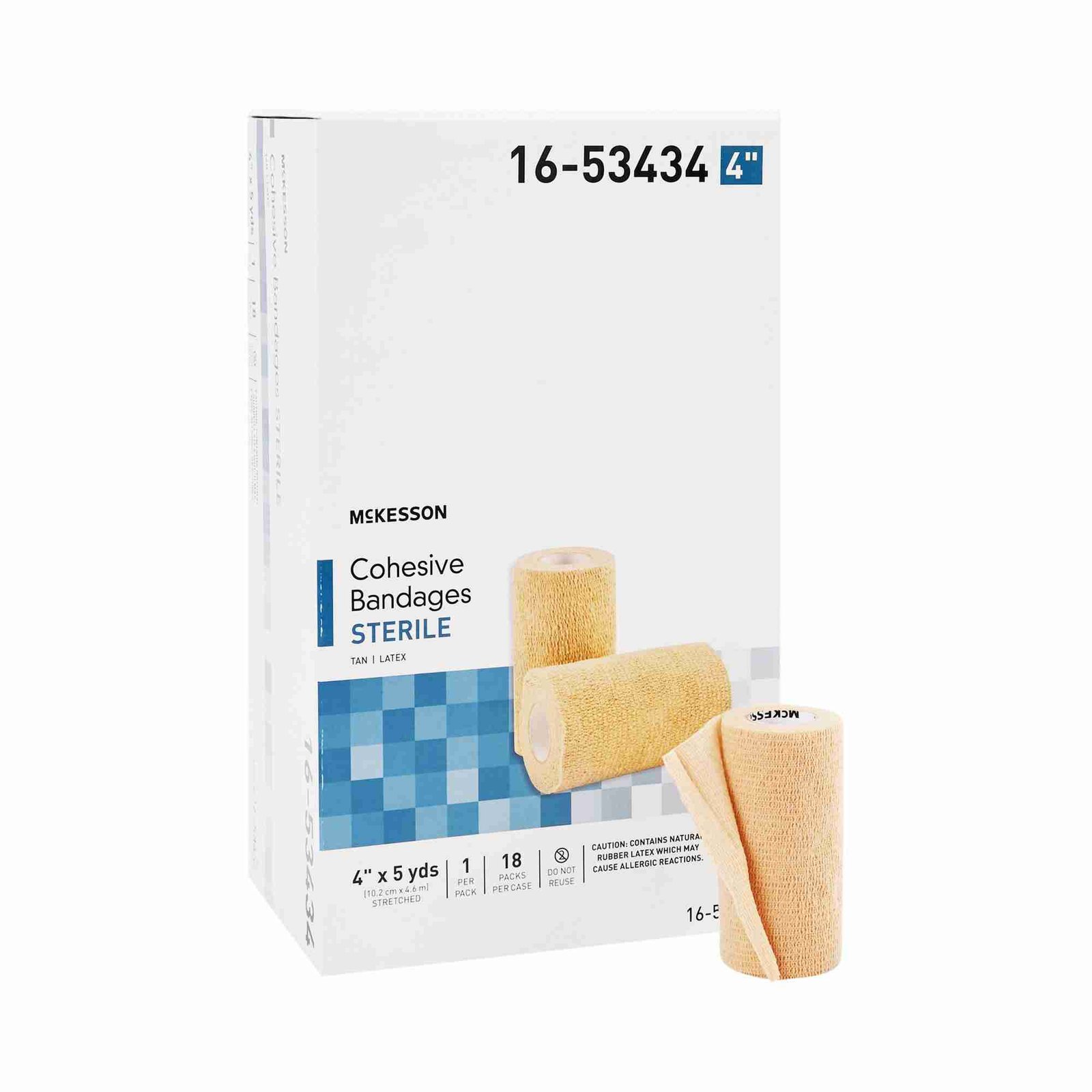 Cohesive Bandage McKesson 4 Inch X 5 Yard Standard Compression Self-adherent Closure Tan Sterile