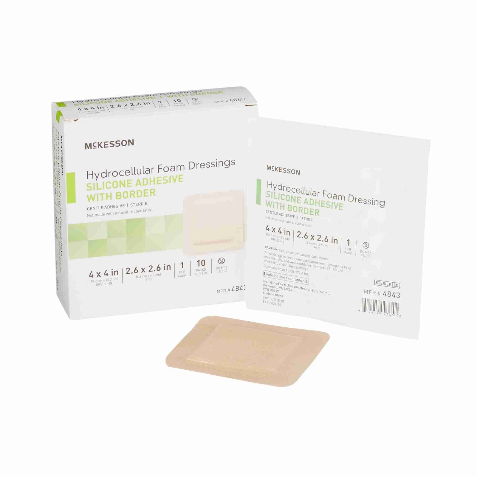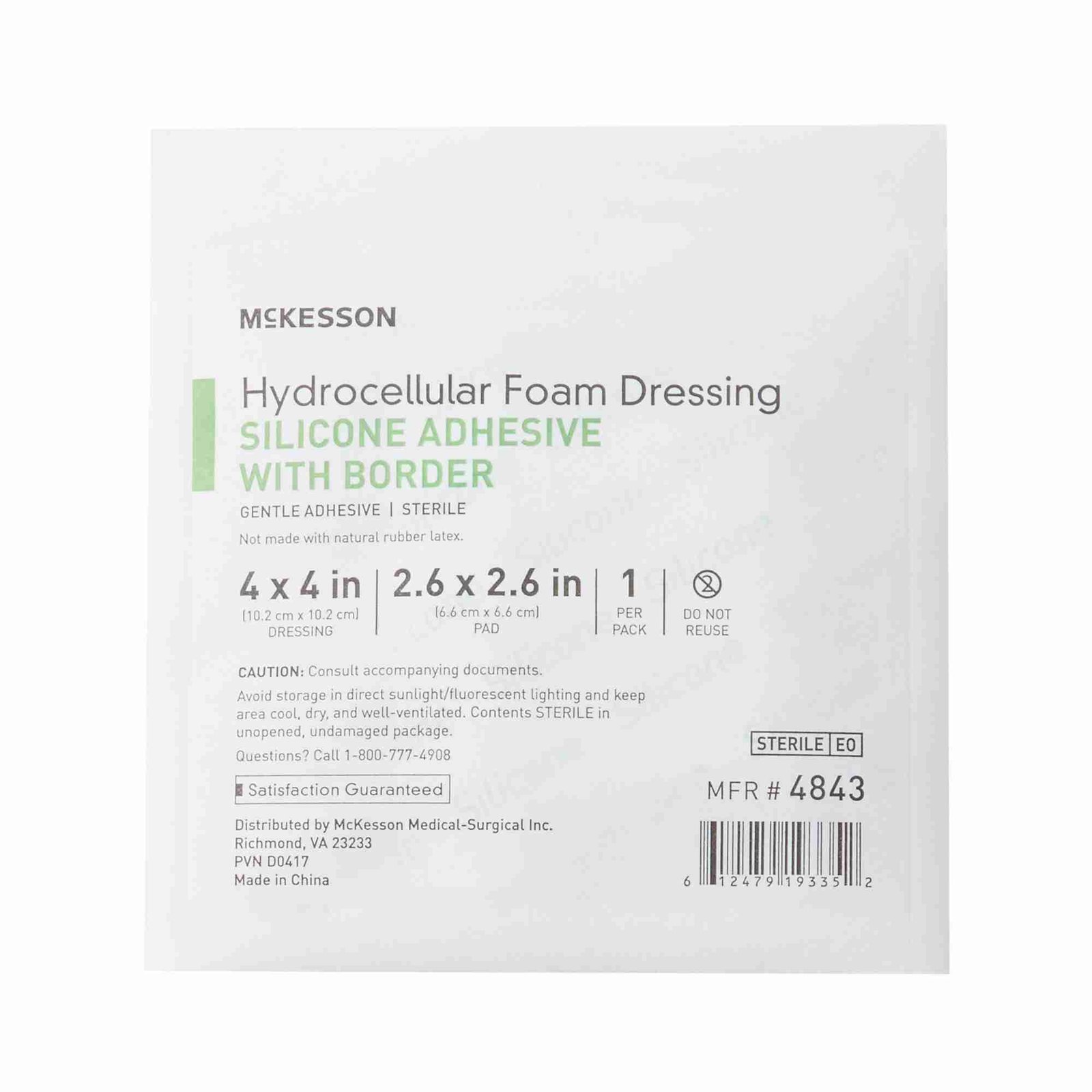 Silicone Foam Dressing McKesson 4 X 4 Inch Square Silicone Adhesive with Border Sterile