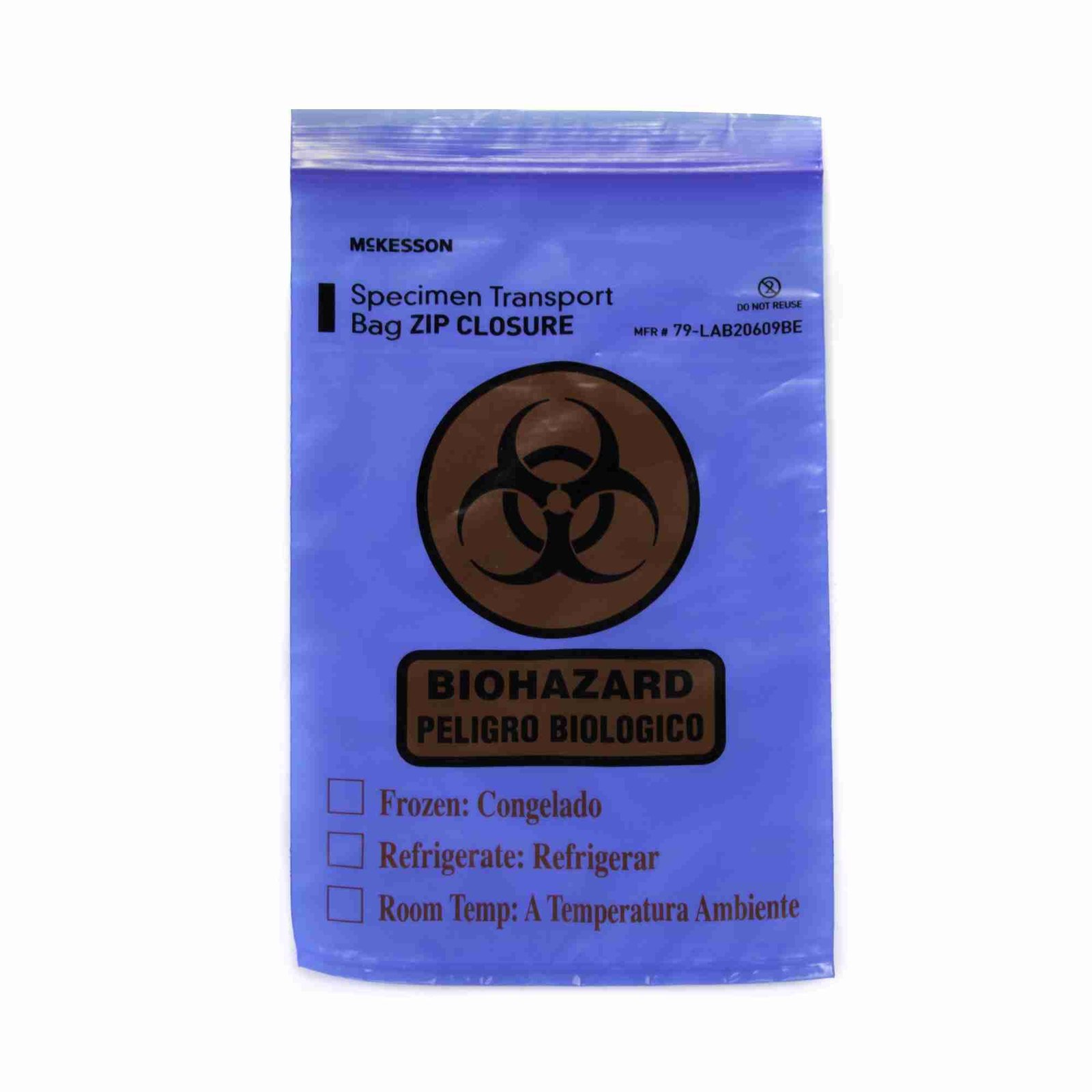 Specimen Transport Bag with Document Pouch McKesson 6 X 9 Inch Zip Closure Biohazard Symbol / Storage Instructions NonSterile