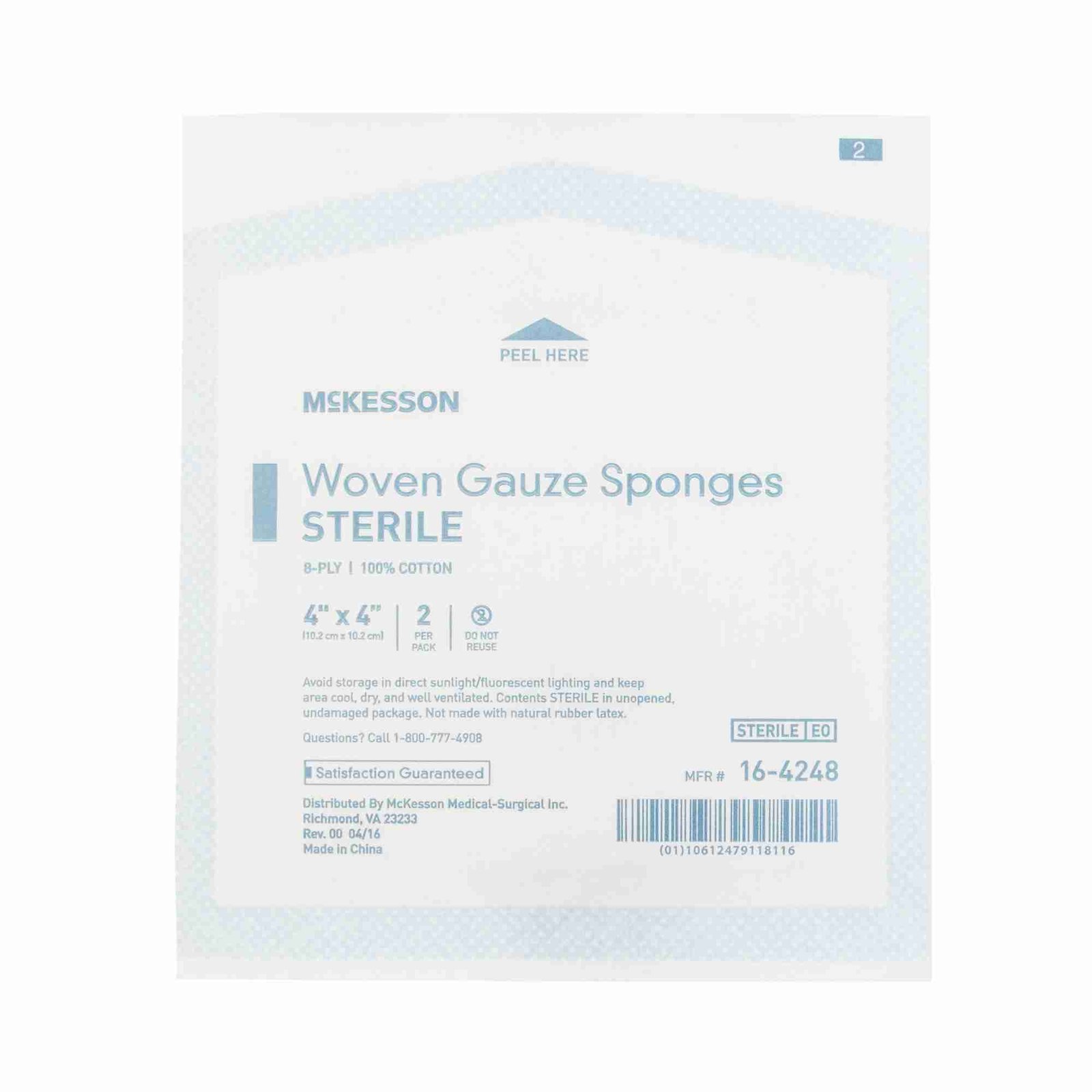 Gauze Sponge McKesson Cotton 8-Ply 4 X 4 Inch Square Sterile