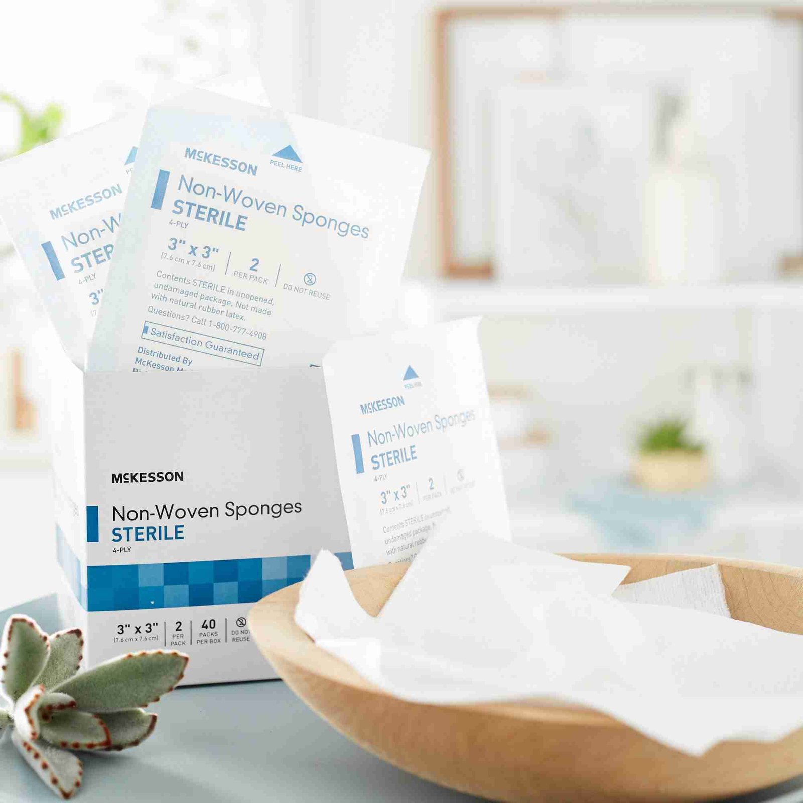 - McKesson nonwoven sponges are 3 x 3 inches and made with a polyester and rayon blend that’s soft and durable