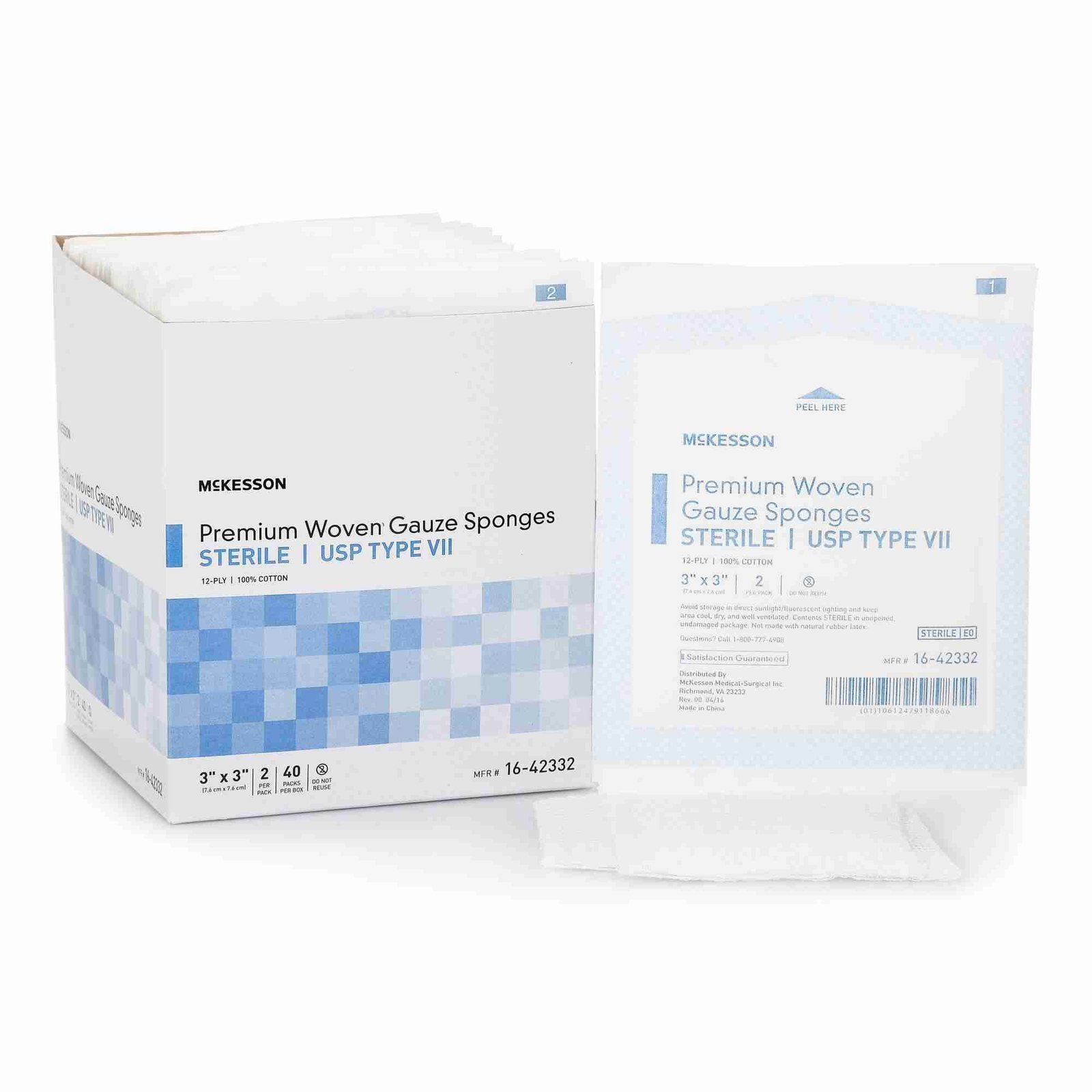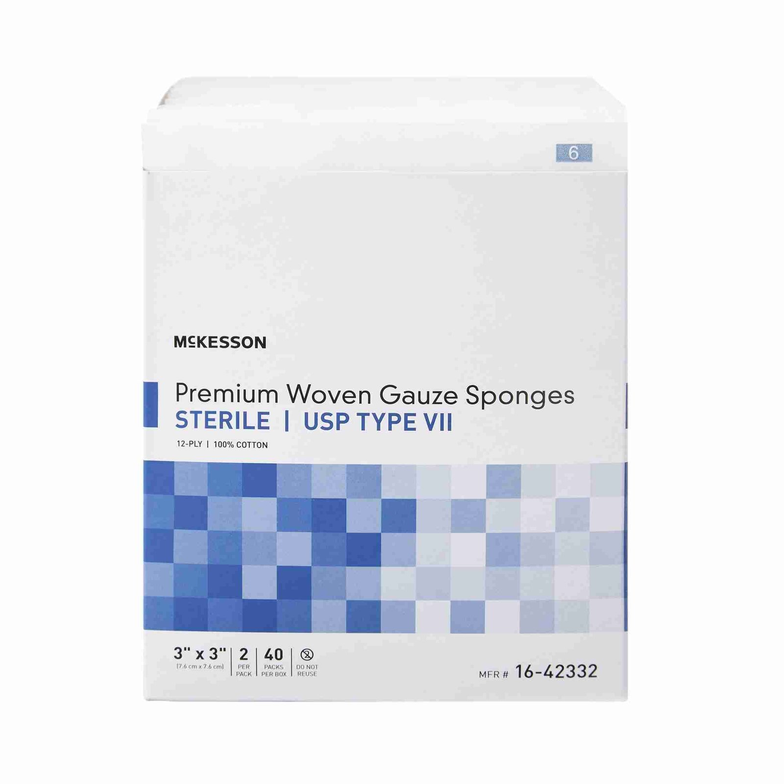 USP Type VII Gauze Sponge McKesson Cotton 12-Ply 3 X 3 Inch Square Sterile