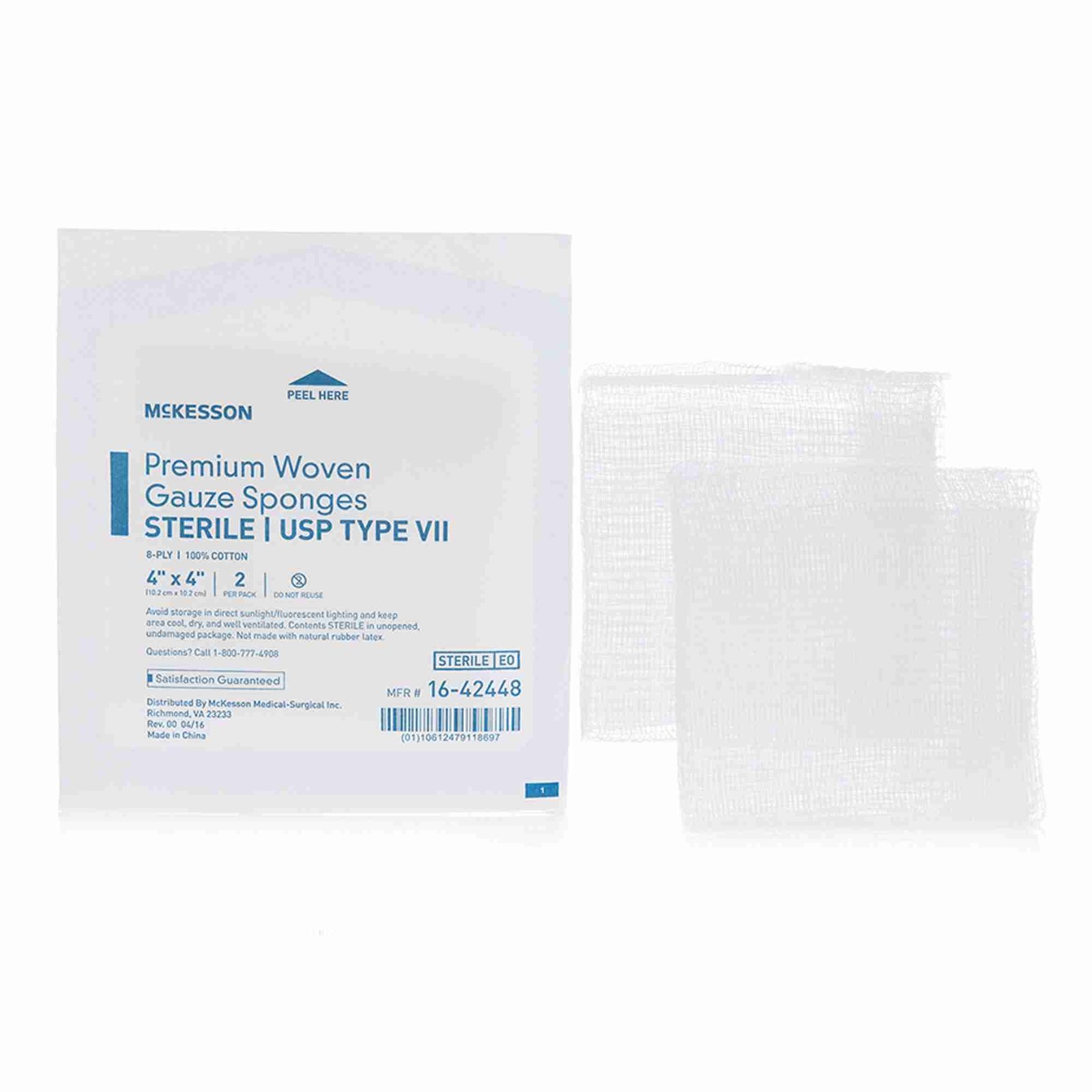 USP Type VII Gauze Sponge McKesson Cotton 8-Ply 4 X 4 Inch Square Sterile