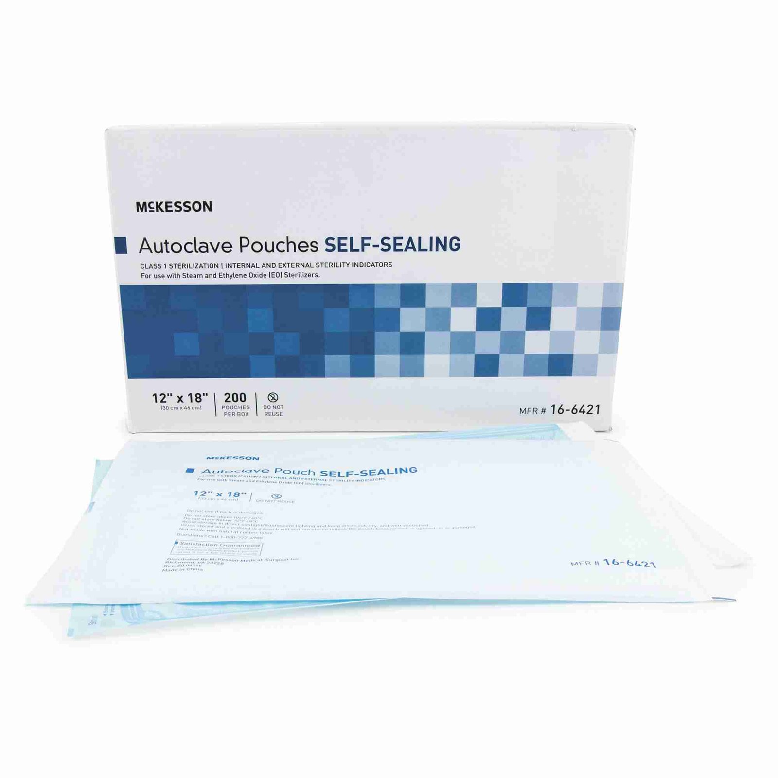 Sterilization Pouch McKesson Ethylene Oxide (EO) Gas / Steam 12 X 18 Inch Transparent Blue / White Self Seal Paper / Film