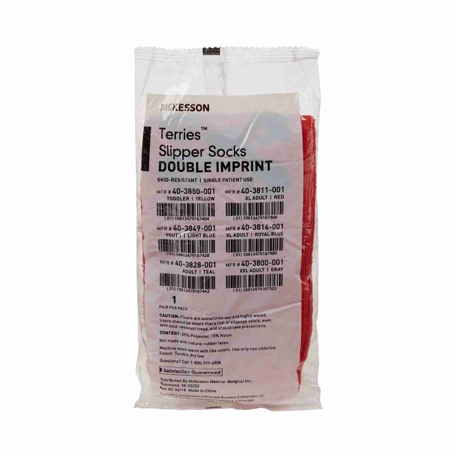 Slipper Socks McKesson Terries™ X-Large Red Above the Ankle