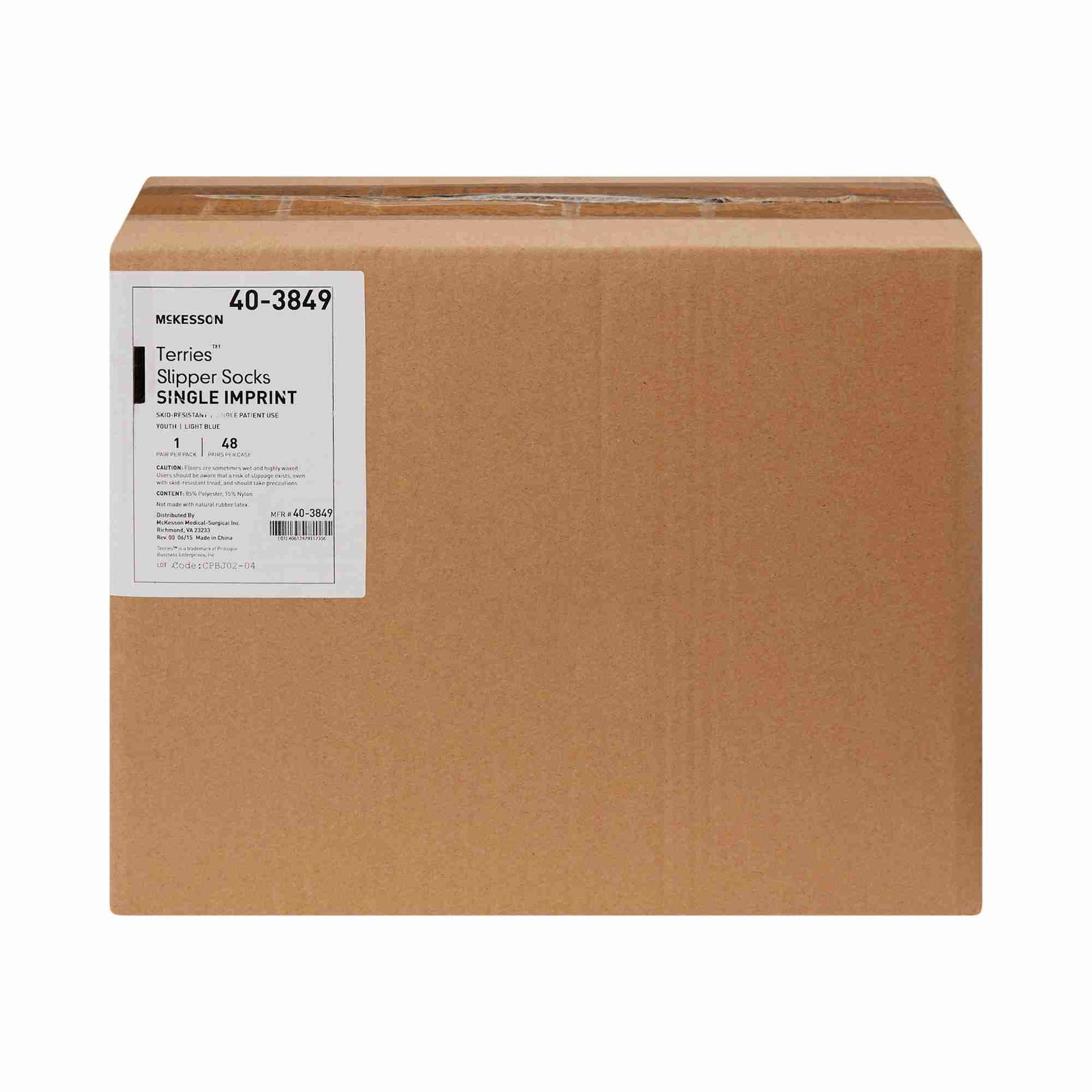 Slipper Socks McKesson Terries™ Youth Light Blue Above the Ankle