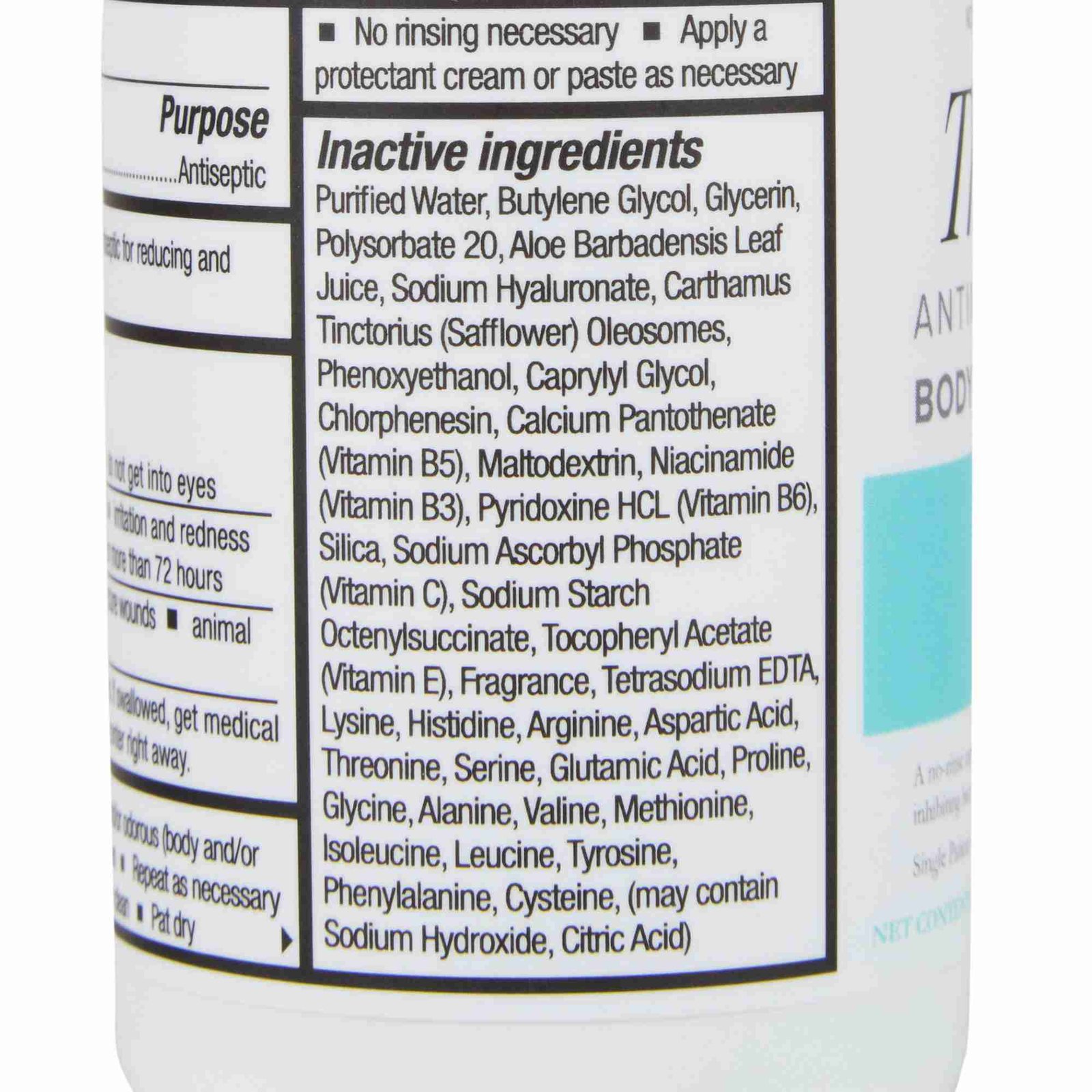 - Rinse-free formula can also be used during showers in-place of soaps