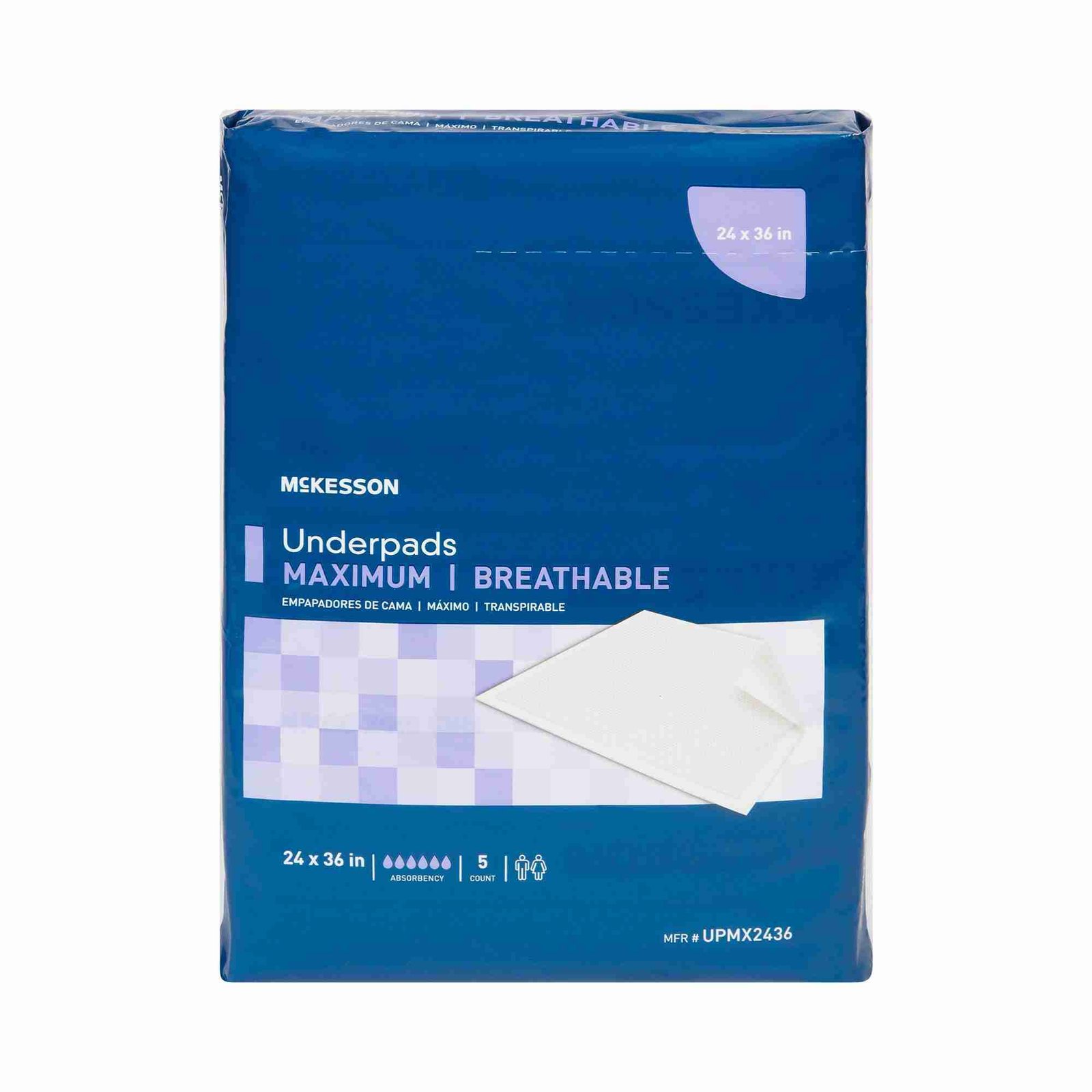 McKesson Ultimate Breathable Underpads, Maximum Protection, 24″ x 36″