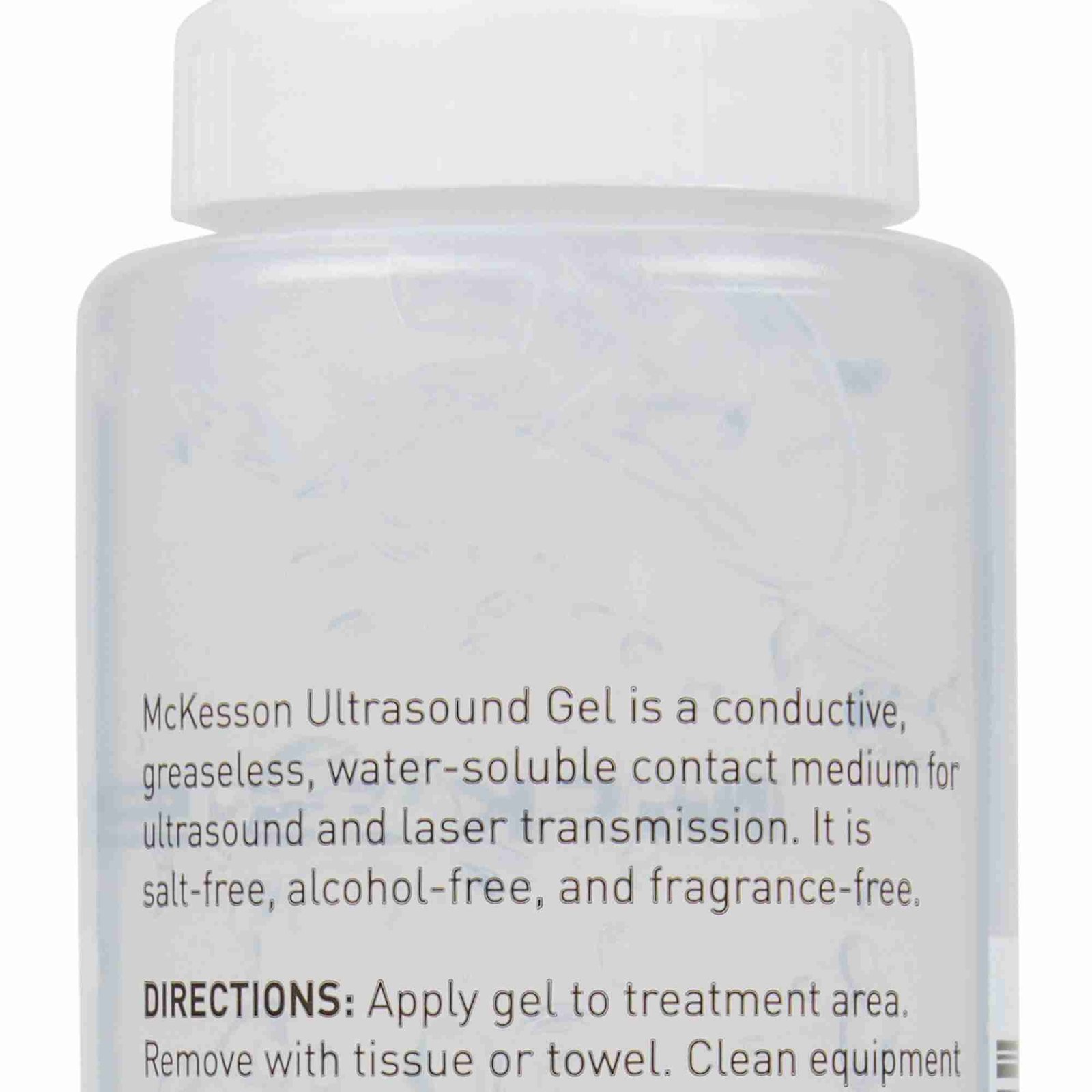 • This 250-milliliter McKesson ultrasound gel has a high viscosity to prevent running and to keep it in place after application