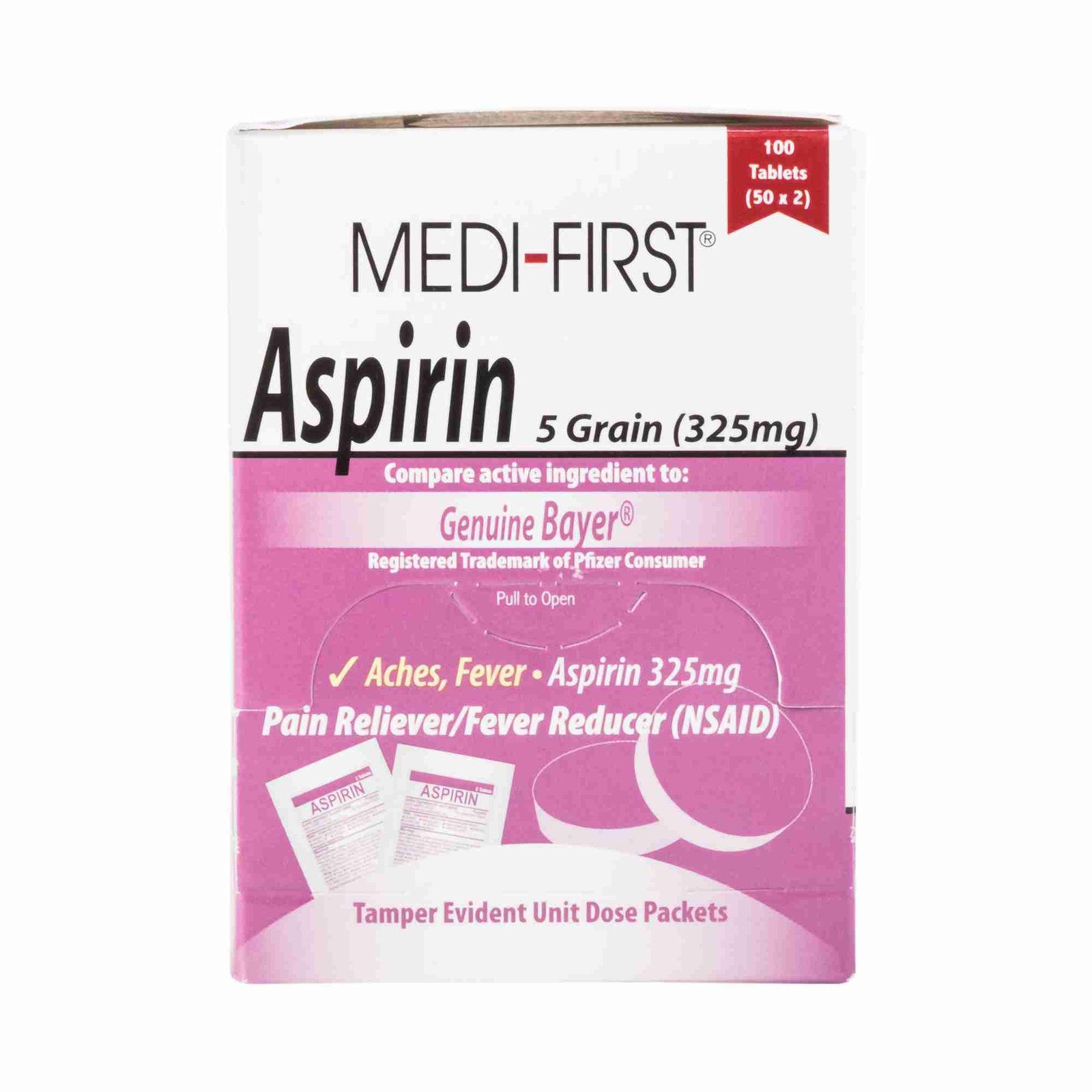 Pain Relief Medi-First® 325 mg Strength Aspirin Unit Dose Tablet 100 per Box