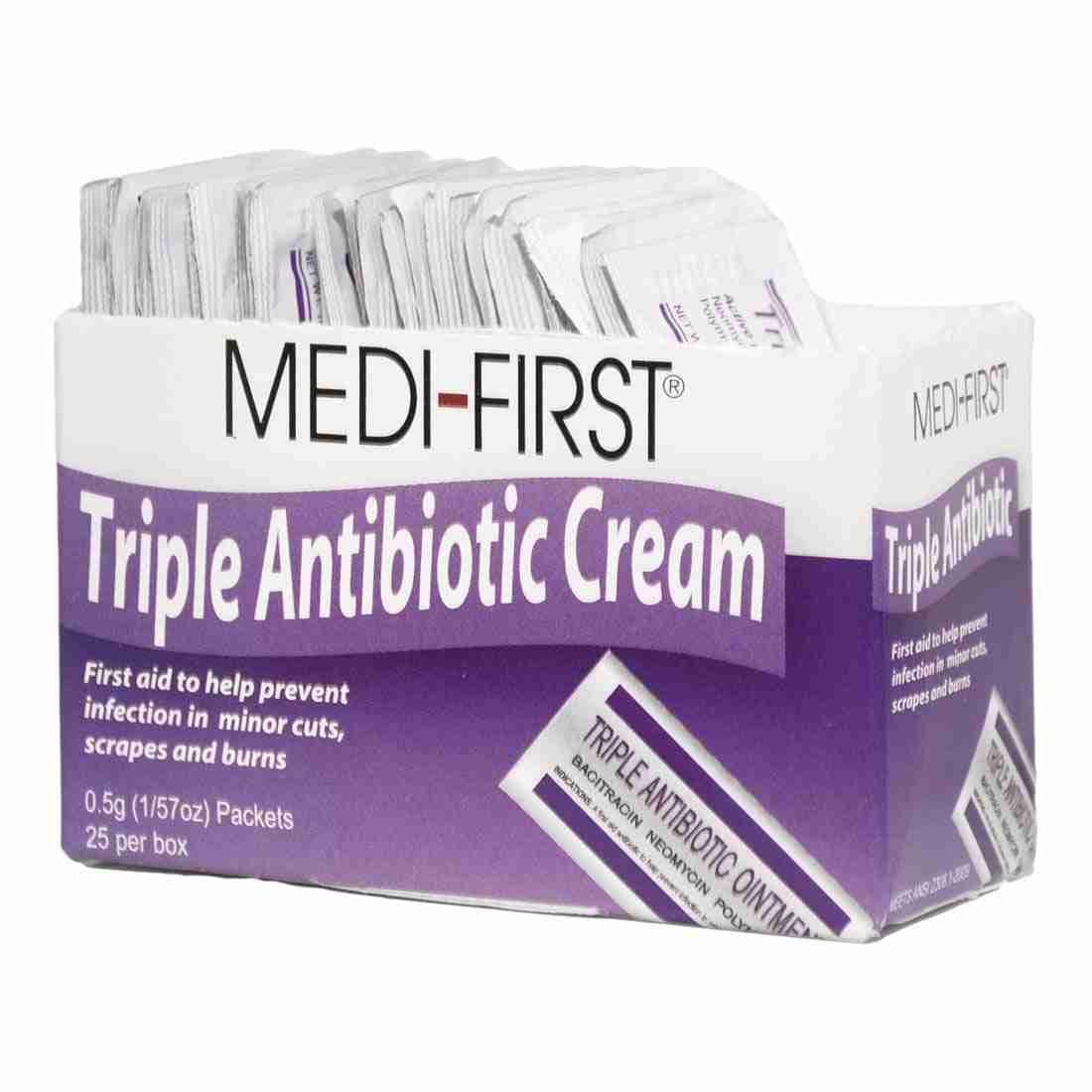 - First aid ointment is packaged in half-gram packets, 25 packets per box for easy distribution as part of workplace first aid kit or as a “just in case” item in your travel toiletries bag