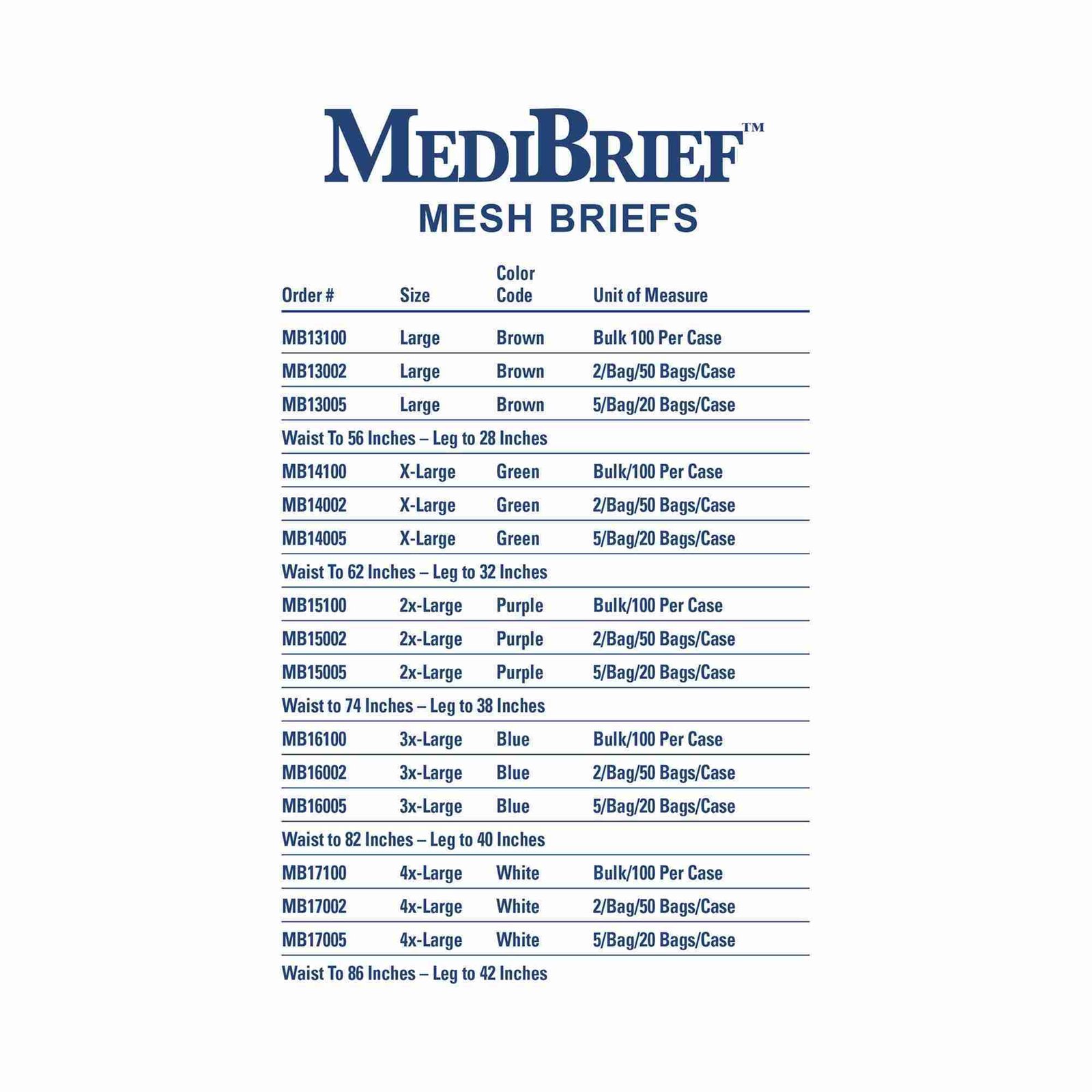 | Invoice Description | BRIEF, MESH WSTBND BRN UNISEX LG (2/BG 50BG/CS) |